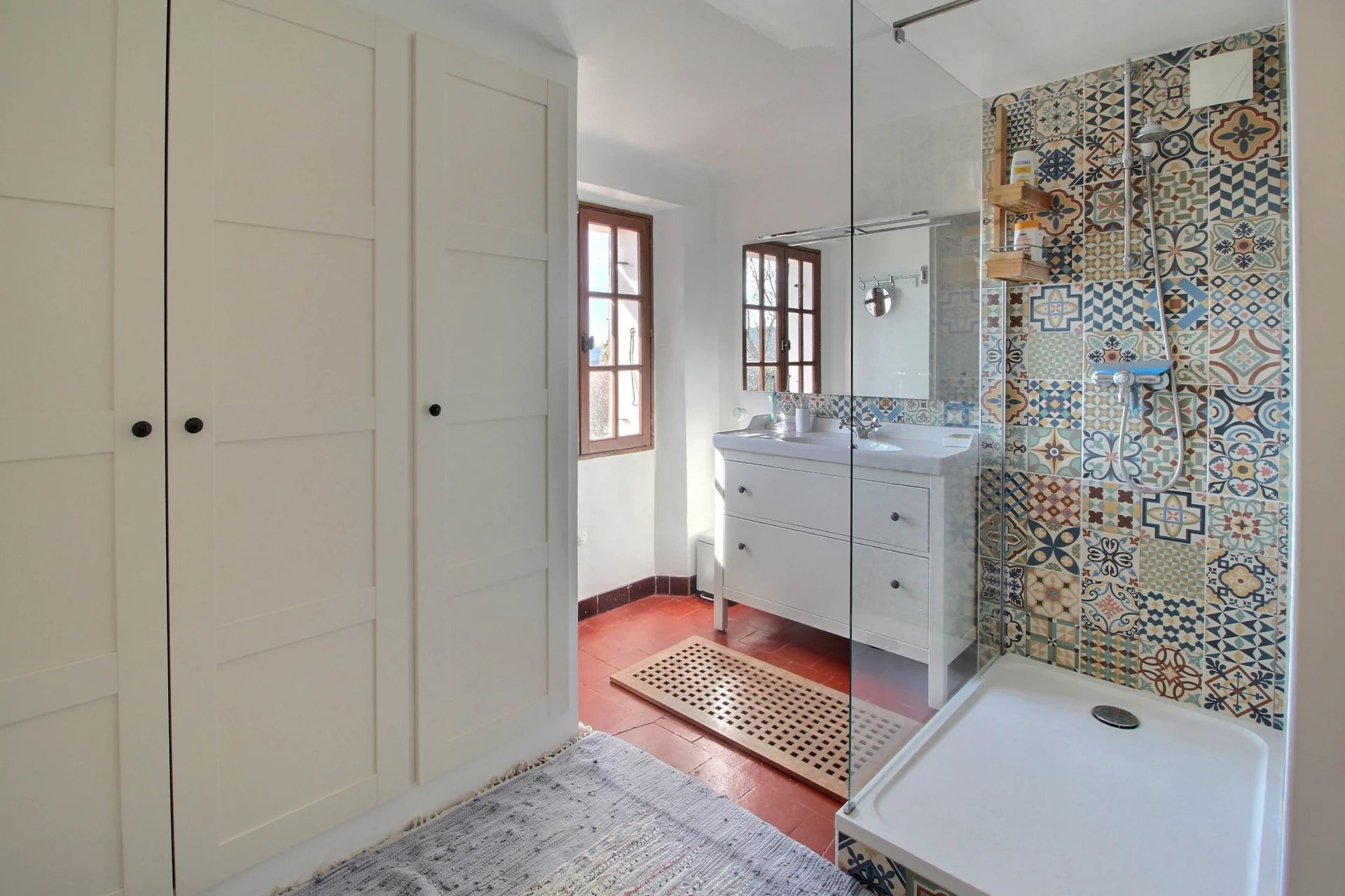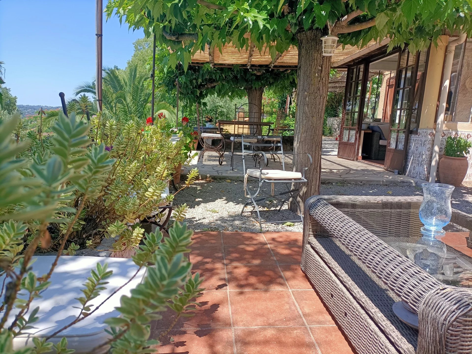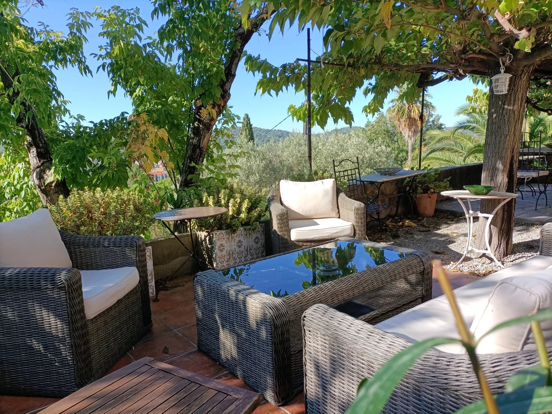 The house benefits on the garden level from a pretty veranda, a living room, a large and bright fitted kitchen, two bedrooms and a bathroom. All the rooms open onto a south-facing terrace with a view of the hills and the town.