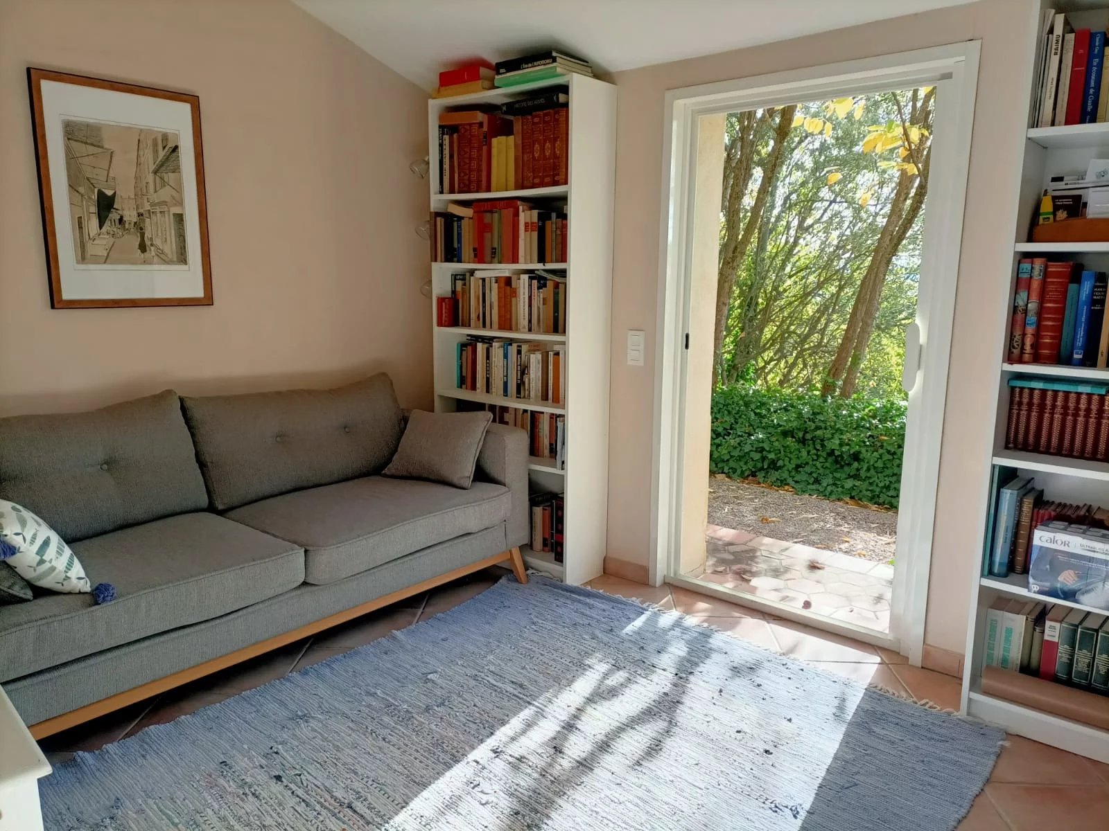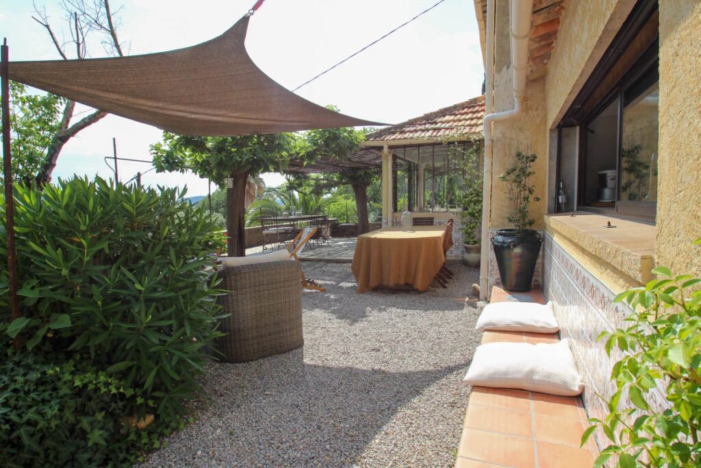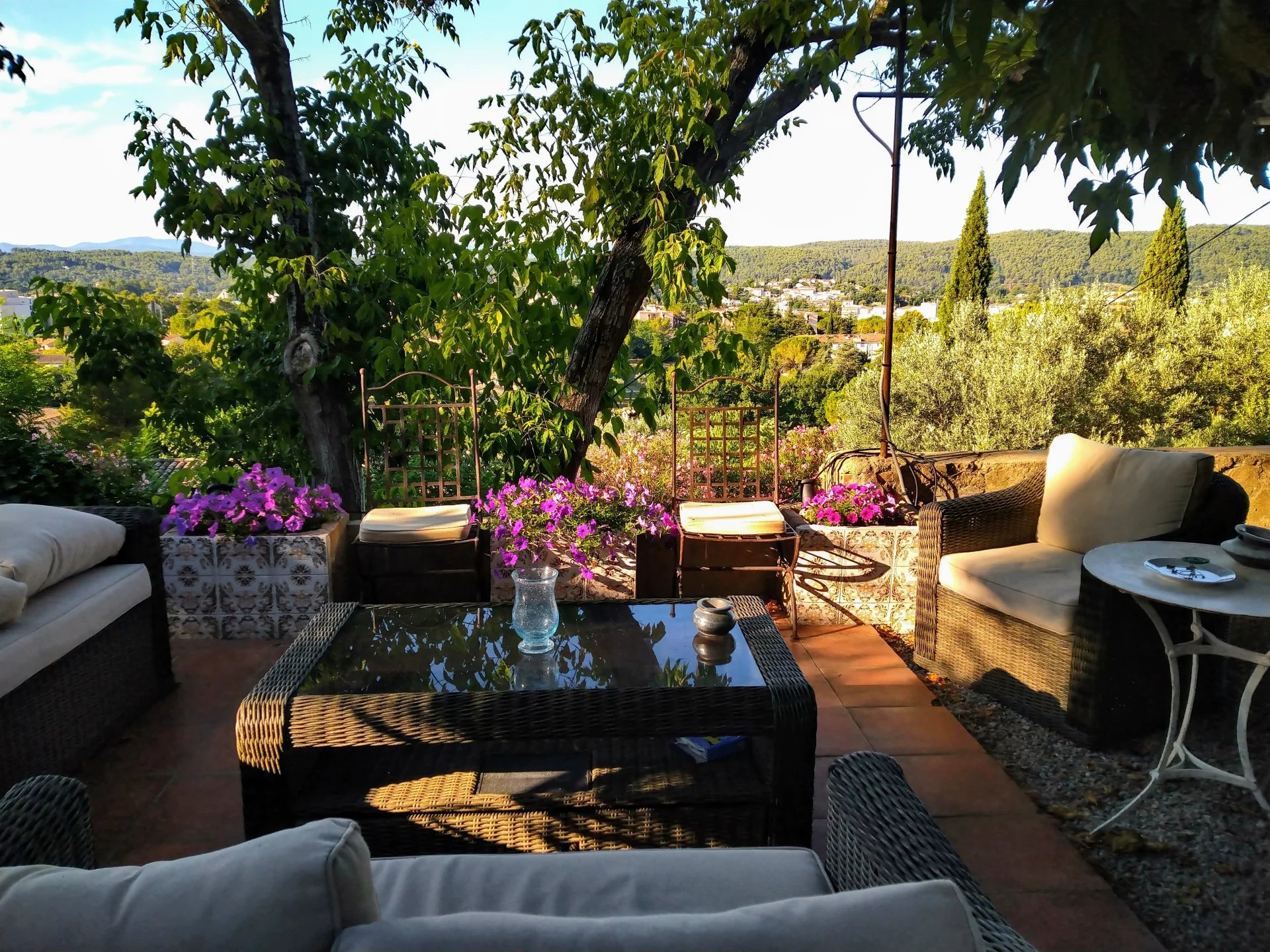 The house benefits on the garden level from a pretty veranda, a living room, a large and bright fitted kitchen, two bedrooms and a bathroom. All the rooms open onto a south-facing terrace with a view of the hills and the town.
