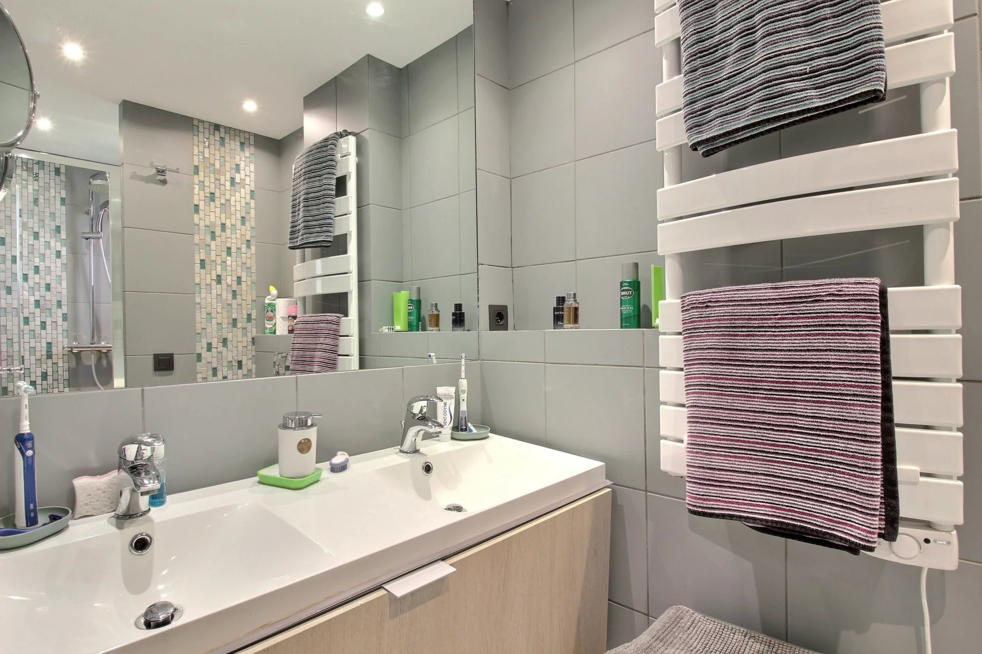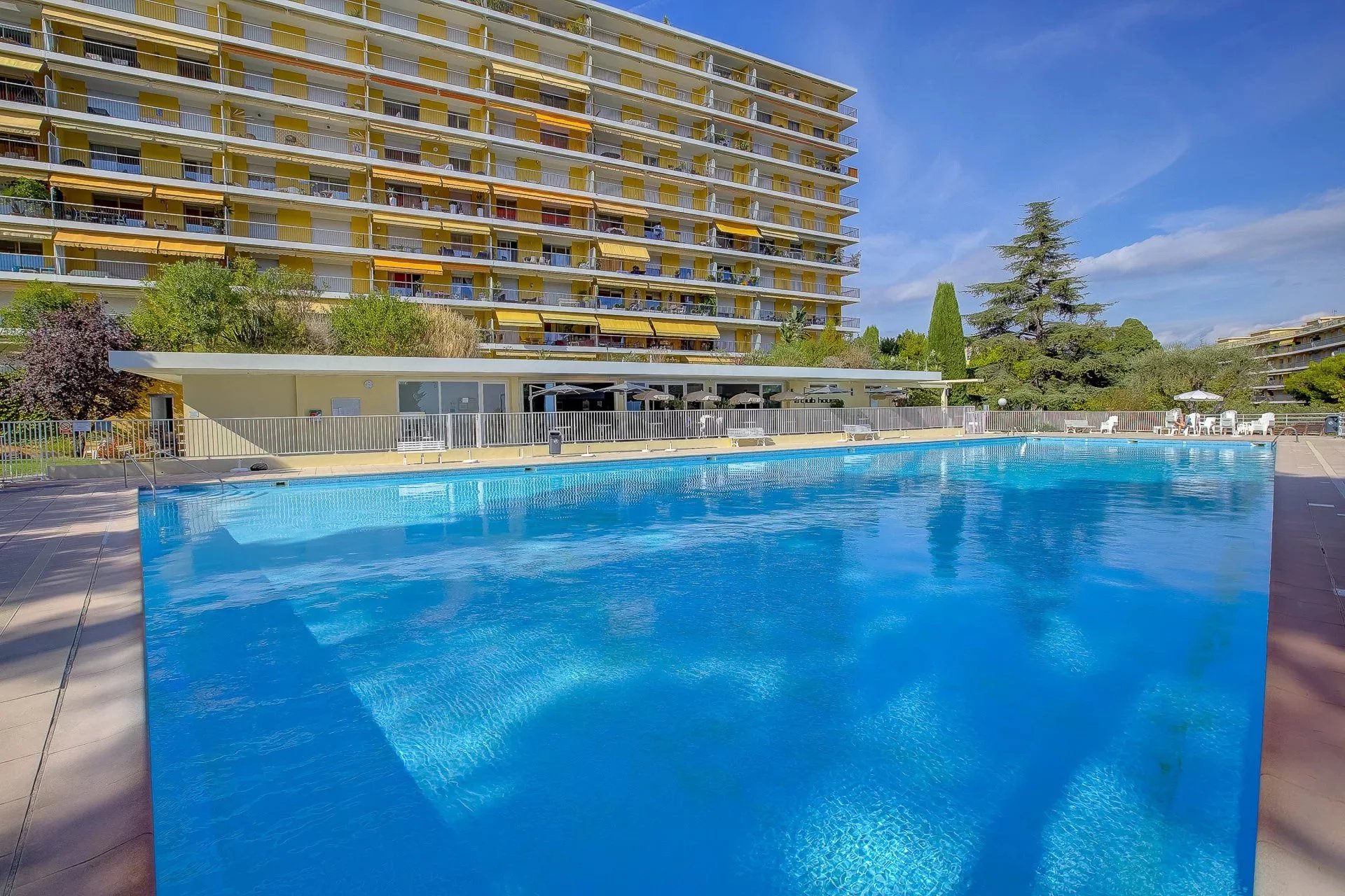 Additional highlights include a large closed garage, a spacious cellar, and the excellent amenities of the residence, which include a tennis court, swimming pool, park, on-site grocery store, pétanque court, and 24/7 janitor service.