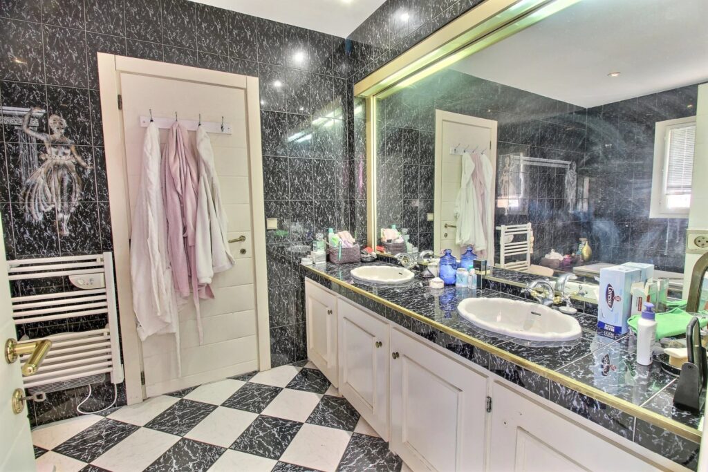 On the ground floor, the villa offers a spacious living area comprising a dining room and a living room, both opening onto the terrace and the pool. You will also find a large separate kitchen, fully equipped. On this level, there are also three bright bedrooms, each with direct access to the outdoors, and two beautiful bathrooms.