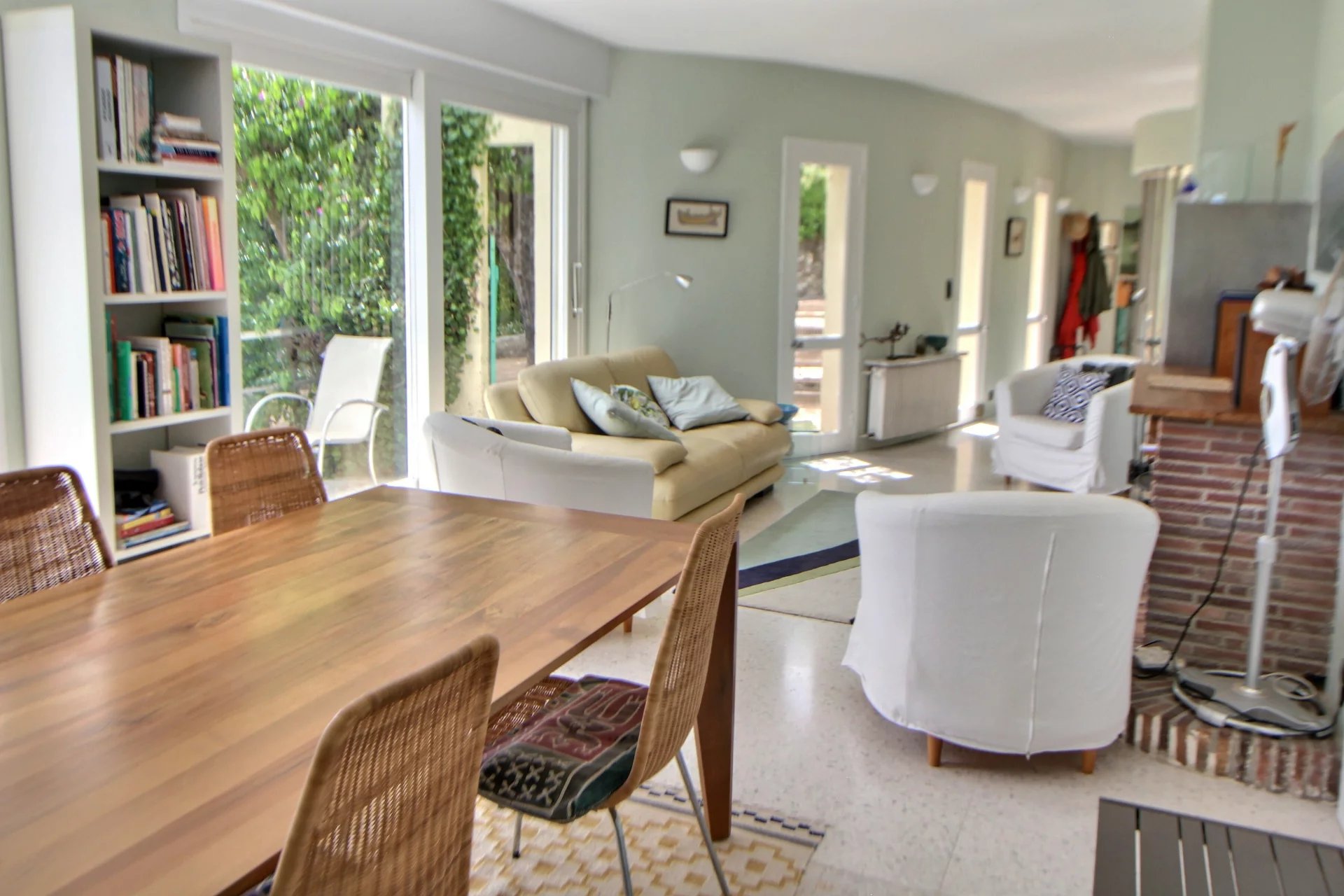 The architect designed villa has unique features with curved walls and view-framing windows which gives one the feeling of living amongst the beautiful surrounding nature.