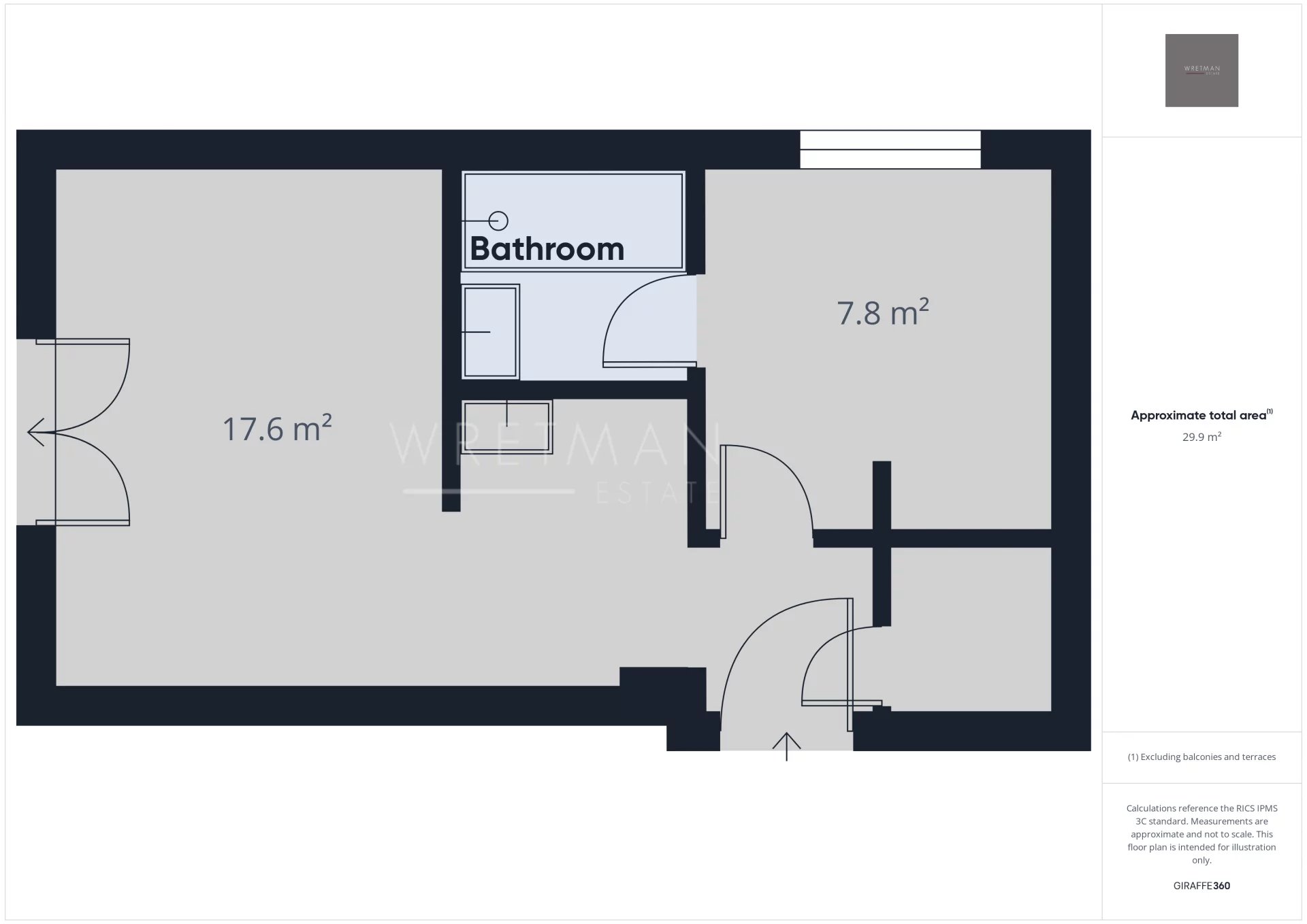 It comprises an entrance hall, a 15m² living room/kitchen, a bedroom with a wardrobe, a shower room and a toilet.