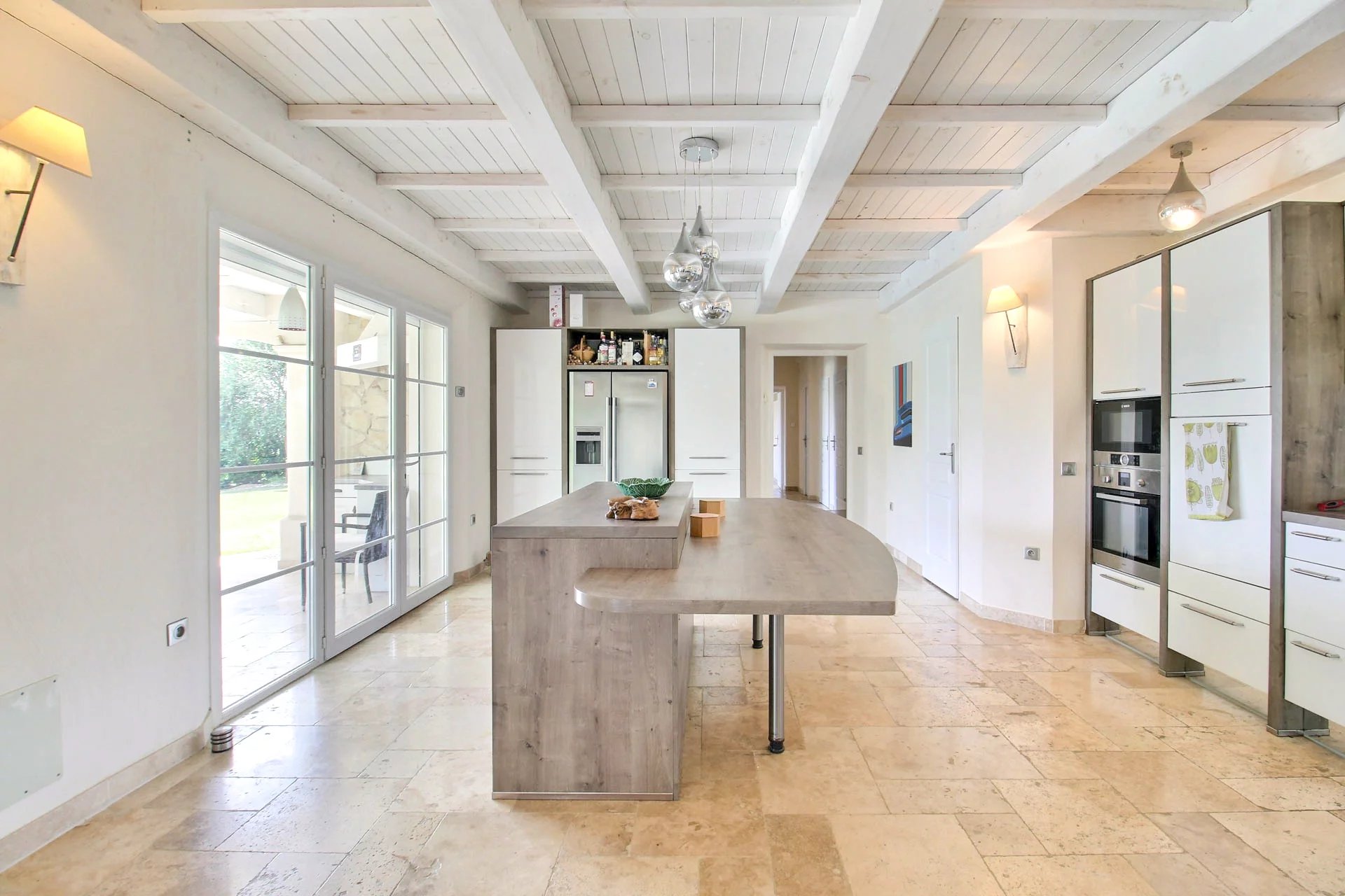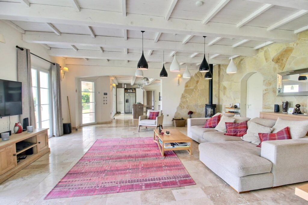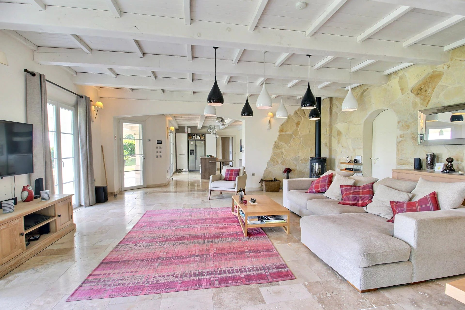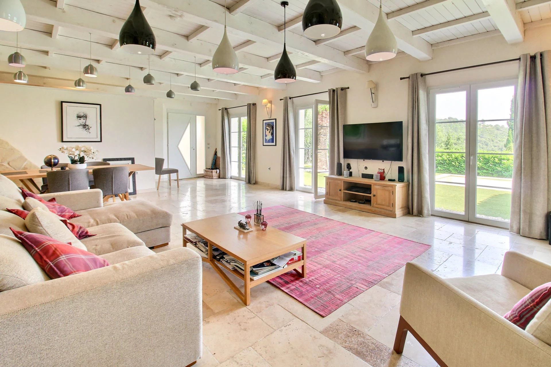 From the moment you enter, you'll be charmed by the spacious and light-filled living room with an open-plan kitchen—ideal for entertaining family and friends. This elegant living area opens directly onto a large shaded terrace, perfect for outdoor dining, with direct access to the pool.