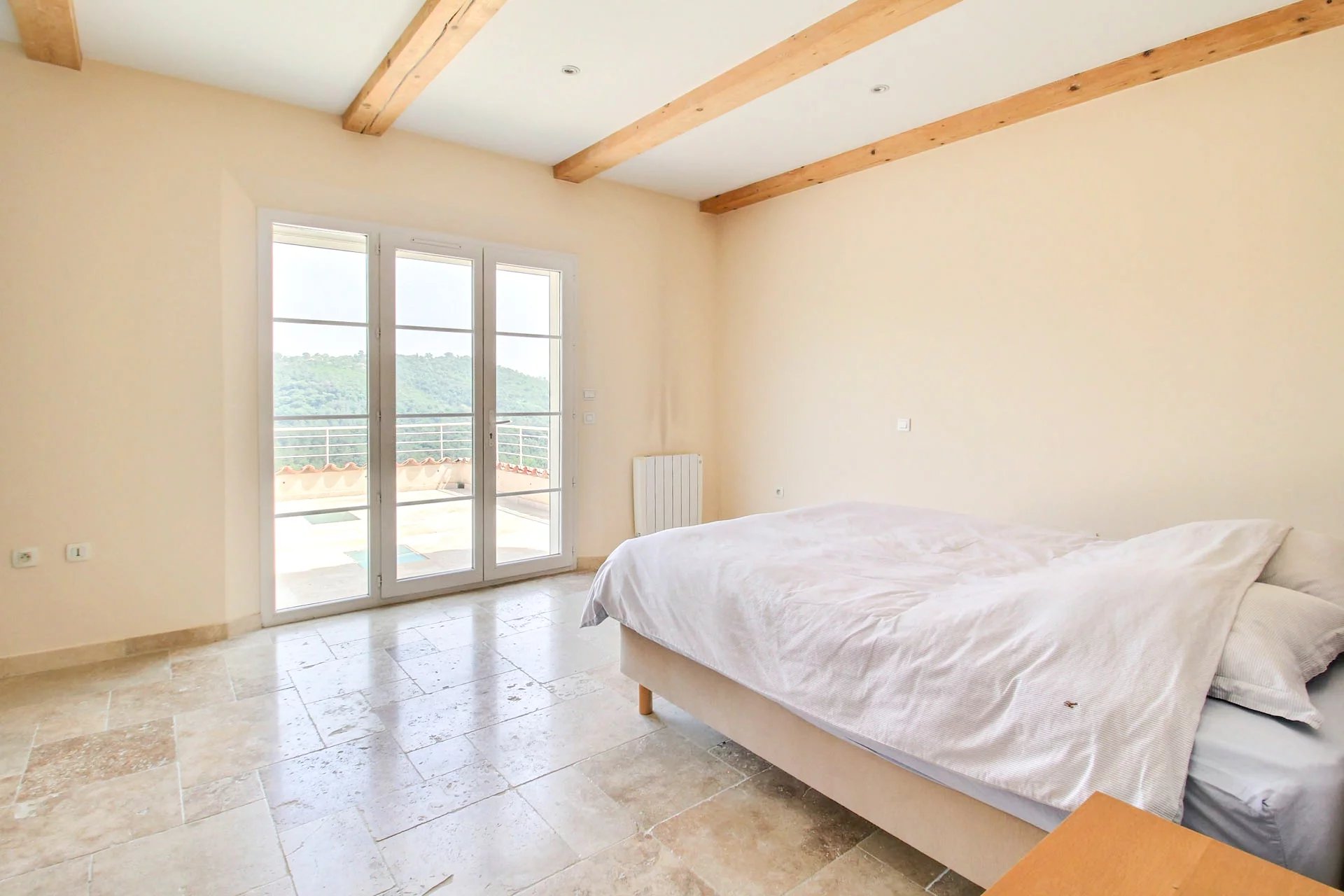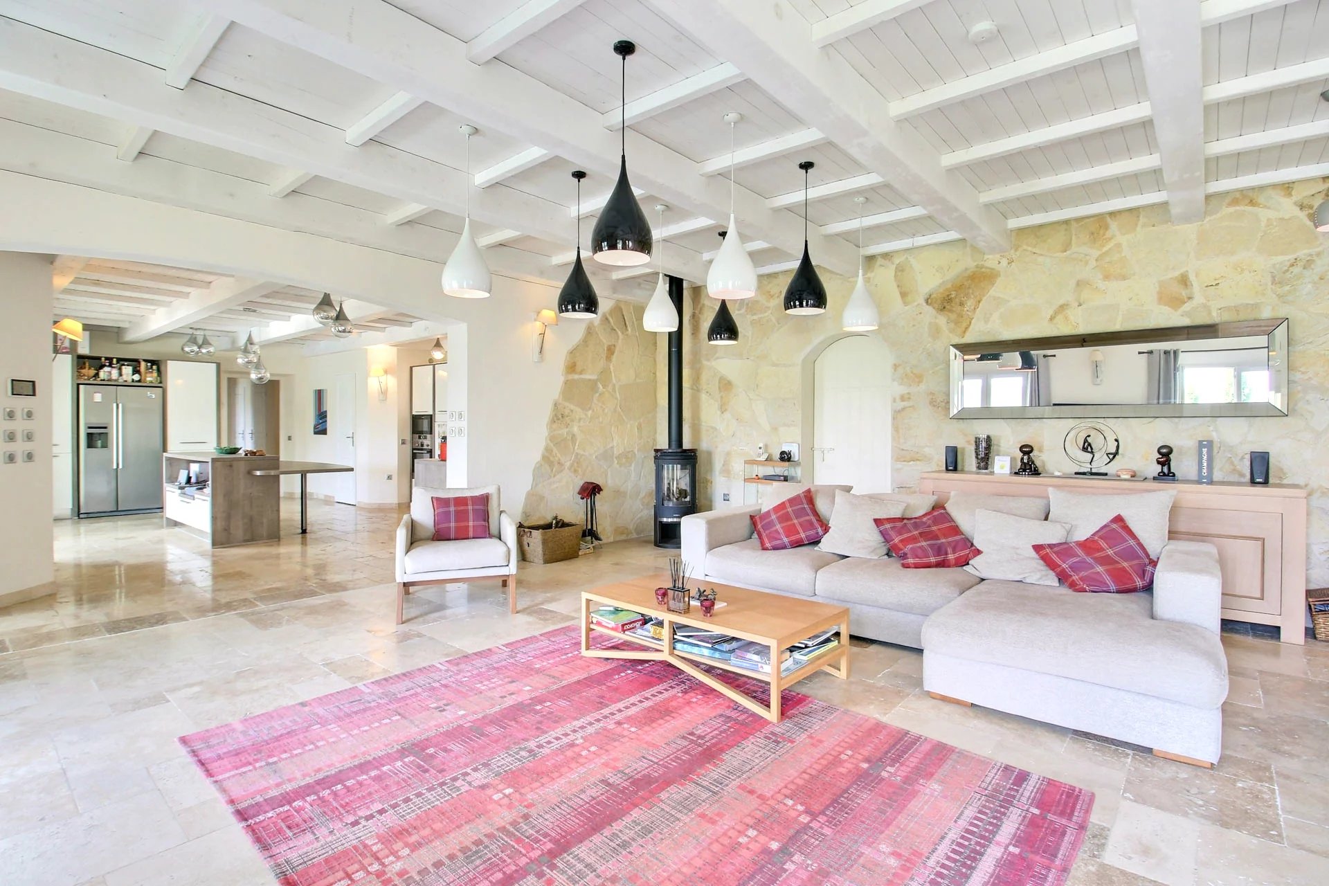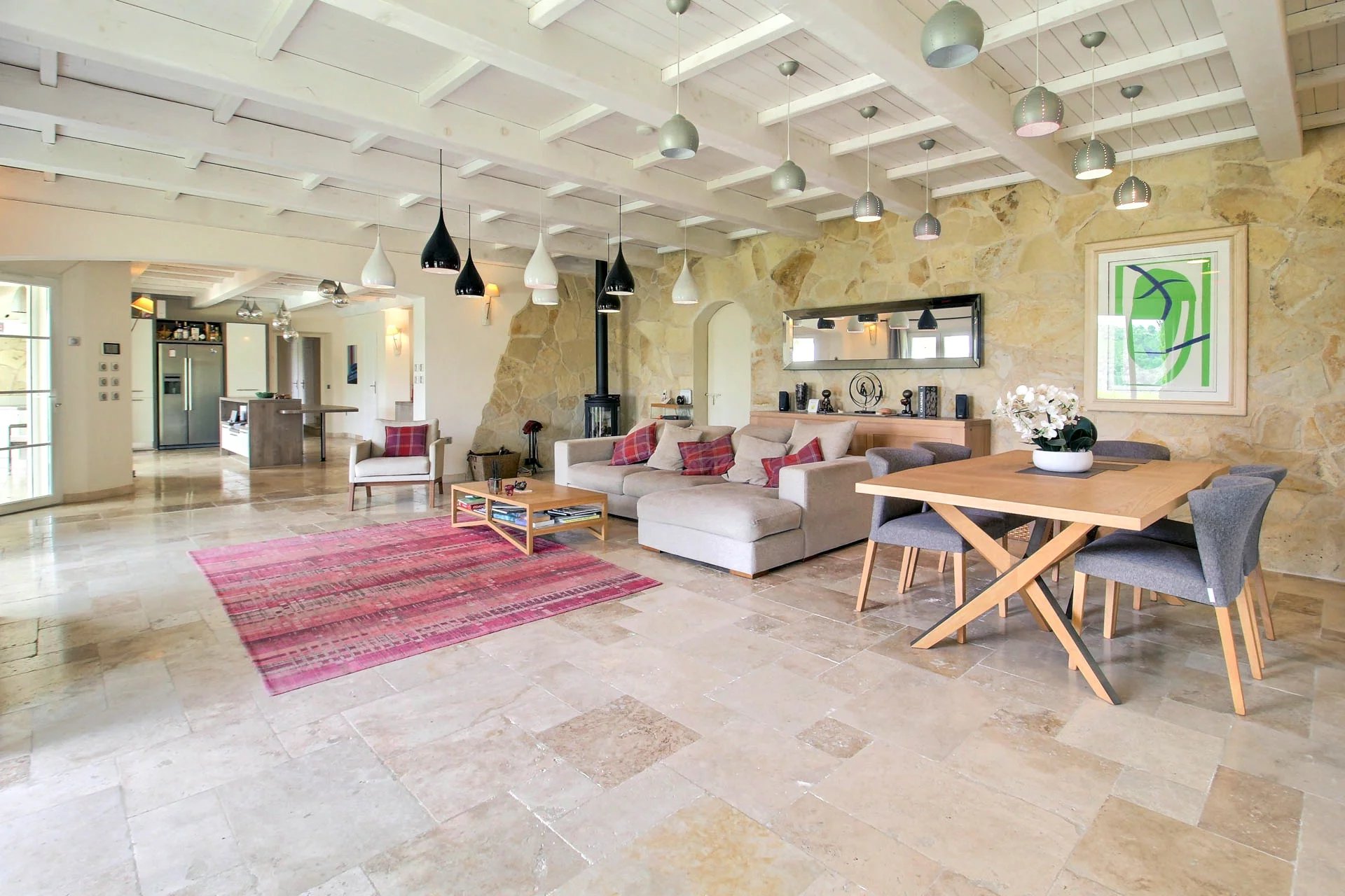 From the moment you enter, you'll be charmed by the spacious and light-filled living room with an open-plan kitchen—ideal for entertaining family and friends. This elegant living area opens directly onto a large shaded terrace, perfect for outdoor dining, with direct access to the pool.