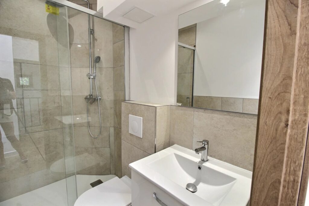 The top level serves as the peaceful night quarters, featuring two inviting bedrooms, each with its own bathroom. One bedroom overlooks the charming Place de la Saumalerie, while the other enjoys a terrace with stunning sea views.
