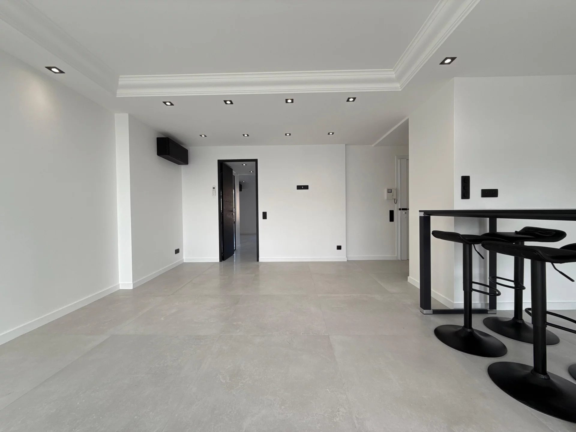Located on the sixth floor of a luxury residence, this approximately 49 m² apartment has been completely renovated with high-quality amenities. It consists of a bright living room with a fully equipped open kitchen, extended by a pleasant terrace of approximately 12 m². From this outdoor space, the panoramic view of the sea and the Palais des Festivals is simply spectacular.