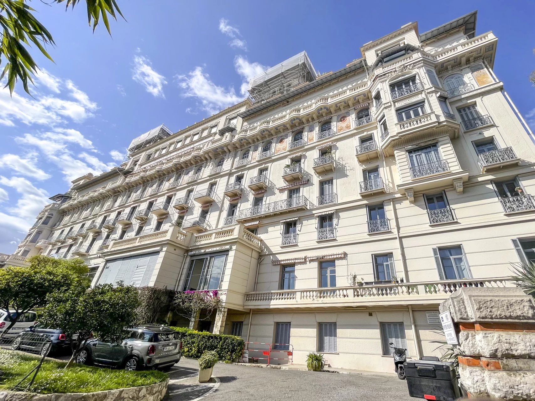 Beautiful 1-2 bedroom apartment with high ceilings, located in one of Menton's most prestigious former luxury hotels from the Belle Epoque period (listed as a 20th-century heritage site) with a sumptuous private park.