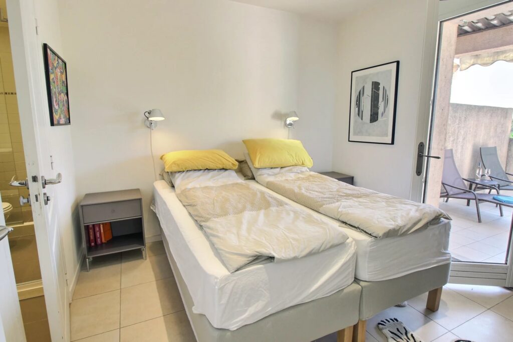 Situated in a 130-hectare park of lush greenery, this private and secure residence offers a serene living environment along with high-quality amenities, including a swimming pool, tennis courts, and convenient on-site shops — all designed to make daily life effortless. Additionally, it is just a 10-minute drive from the sandy beaches of Villeneuve-Loubet and 15 minutes from Nice International Airport.