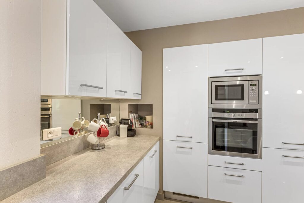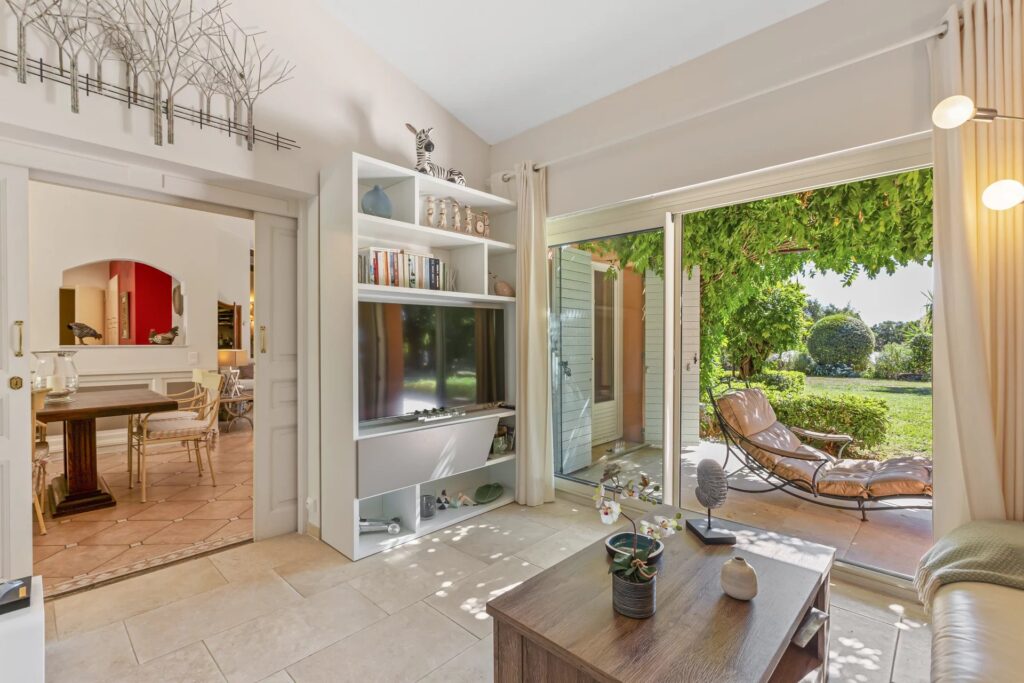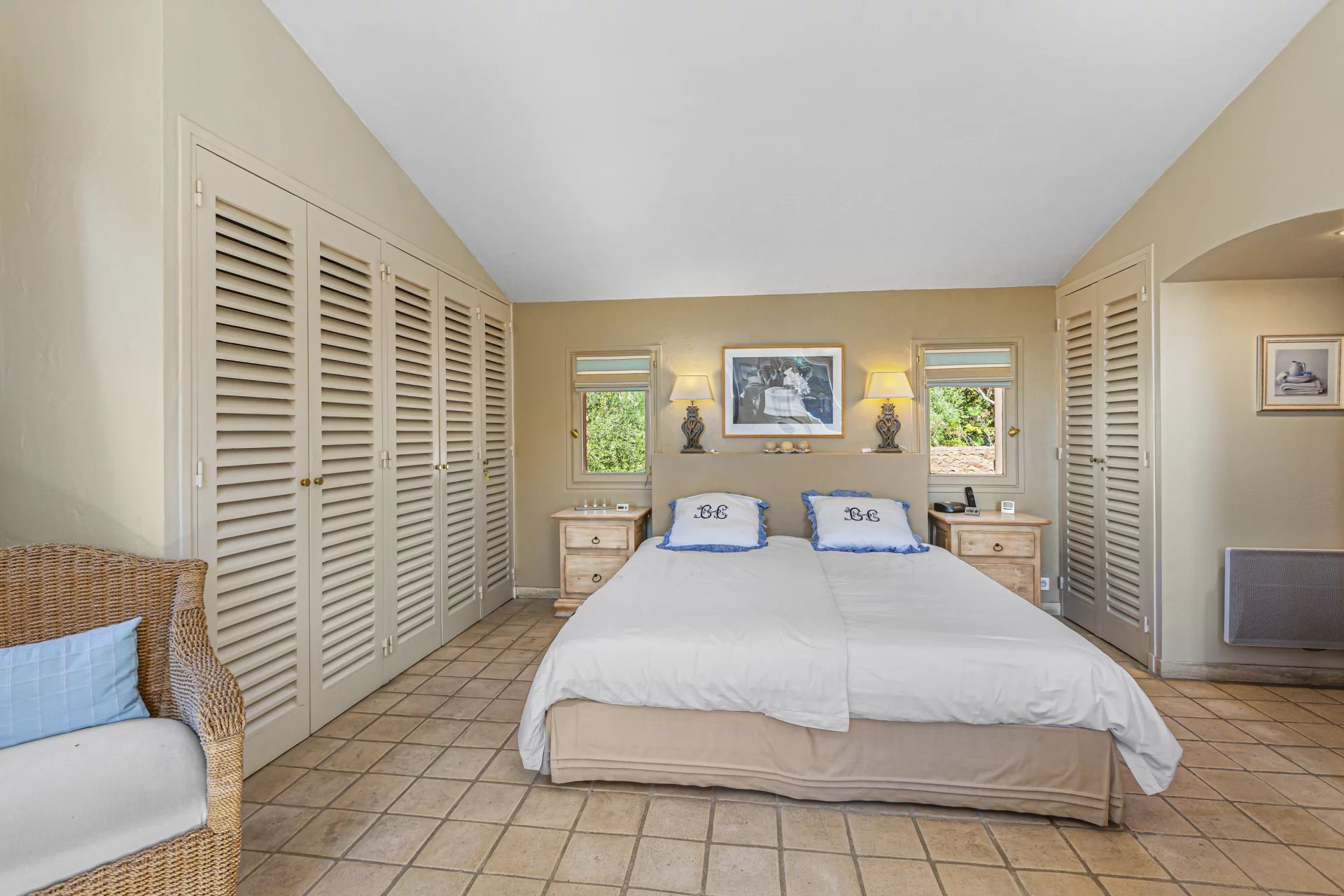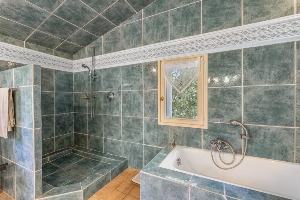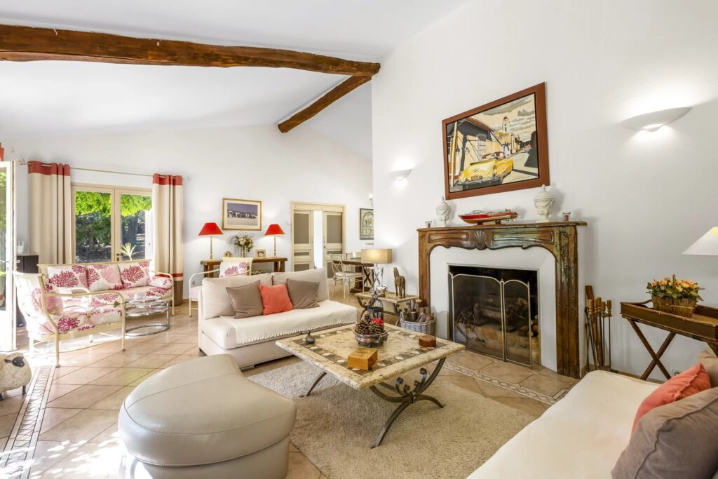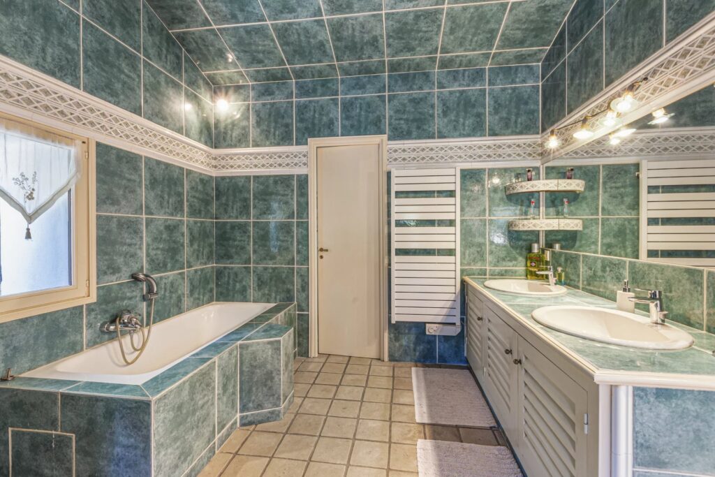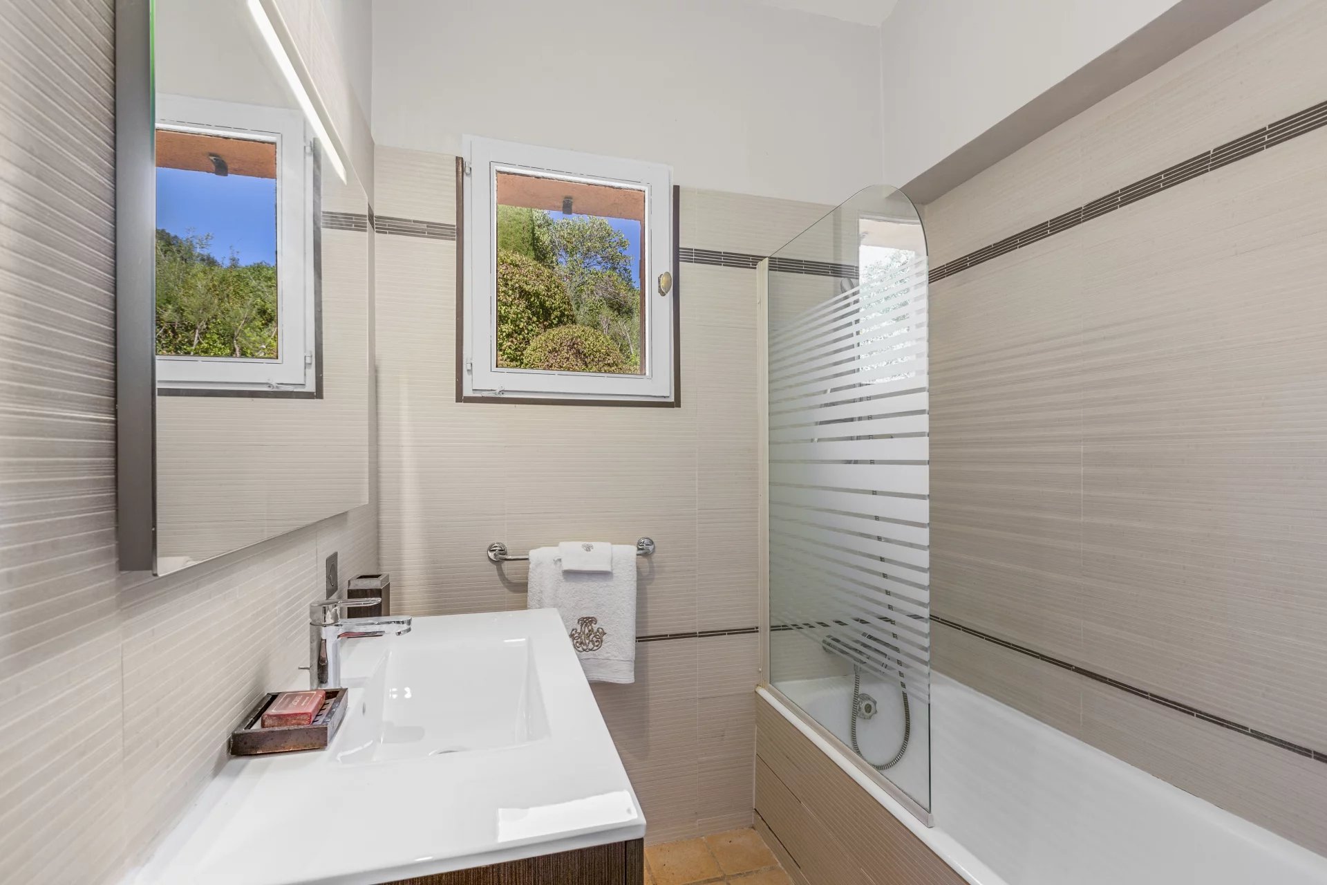 Very well kept house with double garage for 5 cars. Big flat garden with proper pool area, boule court and a tennis court. Absolutely calmness. 10 minutes from Mougins, on the limit in between Auribeau and Pégomas. Inside the house you find everything on ground floor except the parental ensuite which is situated on first floor. Living room and dining room all together with the kitchen a bit separated but can be open towards the dining area. Big fireplace.