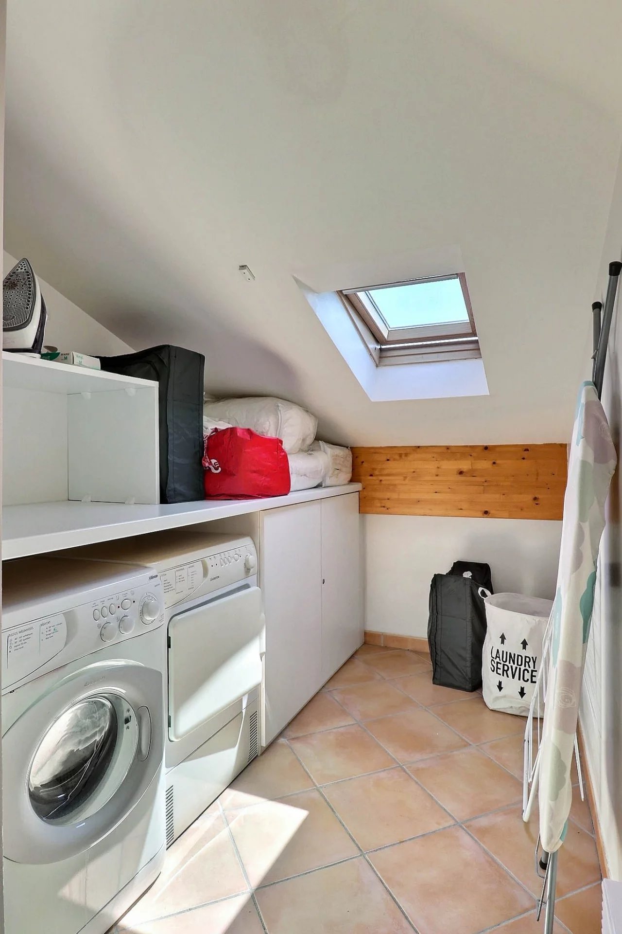 At walking distance of all shops, restaurants, the beach, and the harbour with Les Bateaux Verts (green boats) to Saint-Tropez.