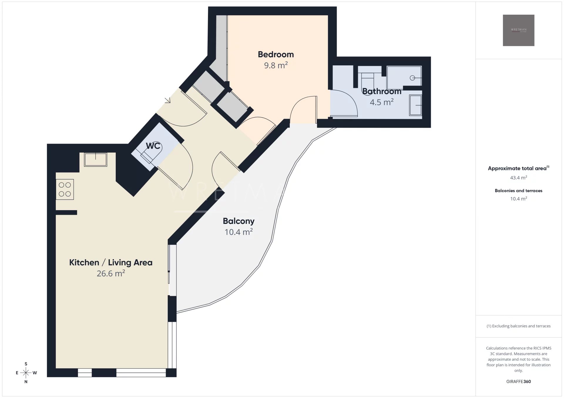 - 1 Bedroom (10.75 m²)