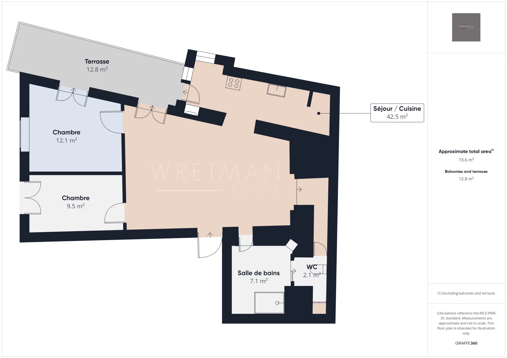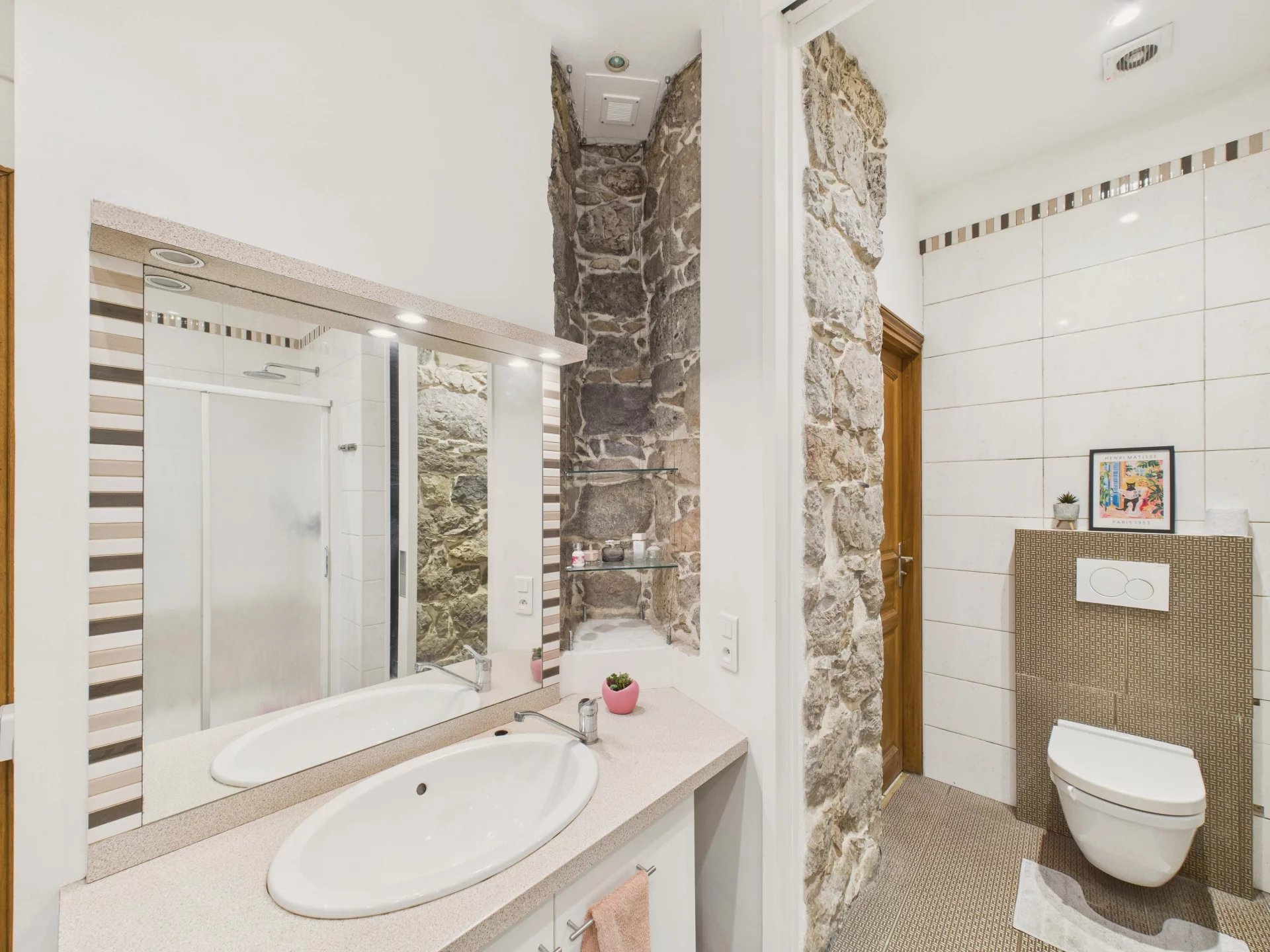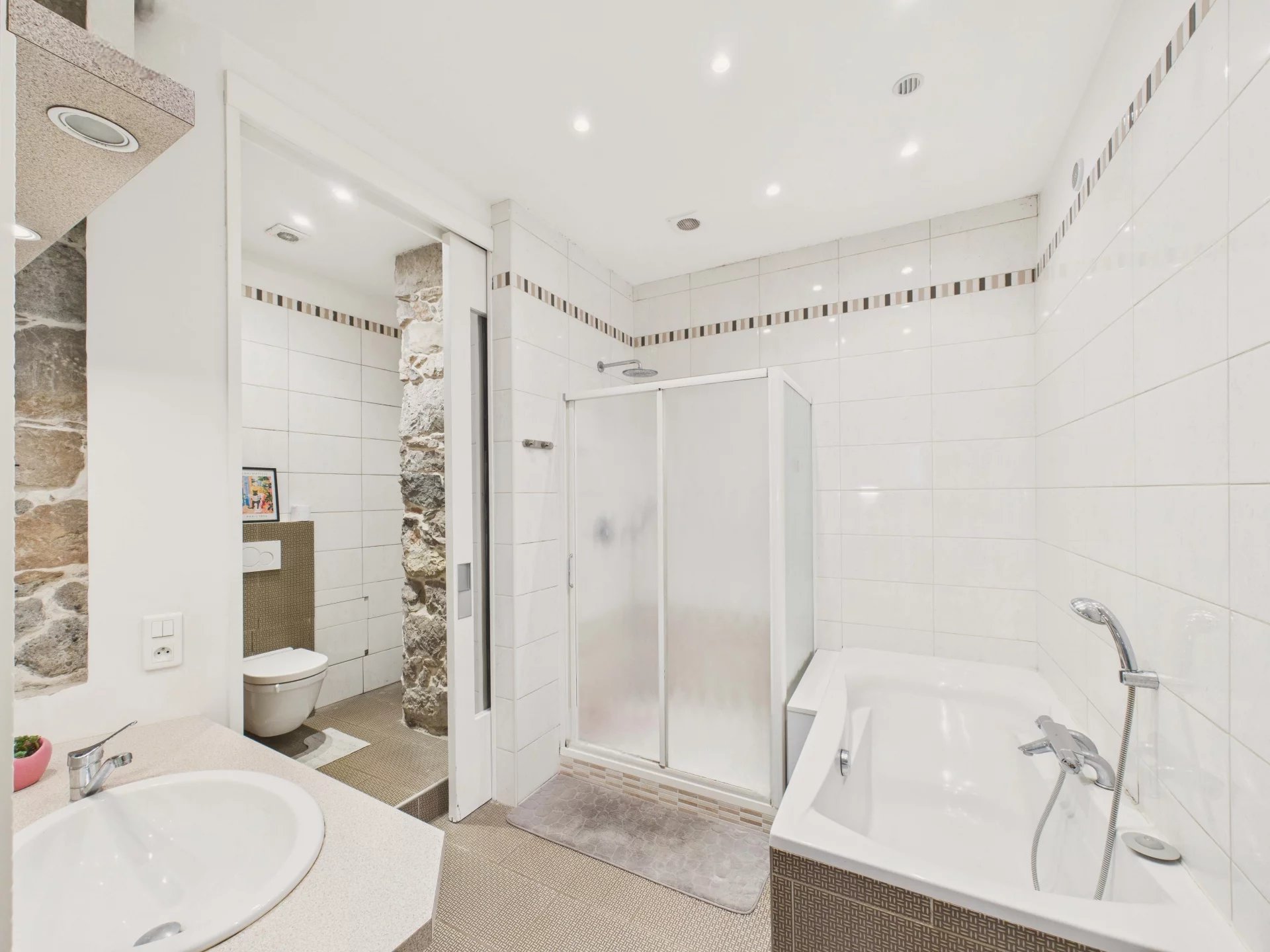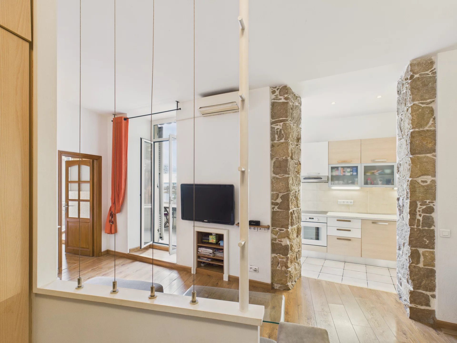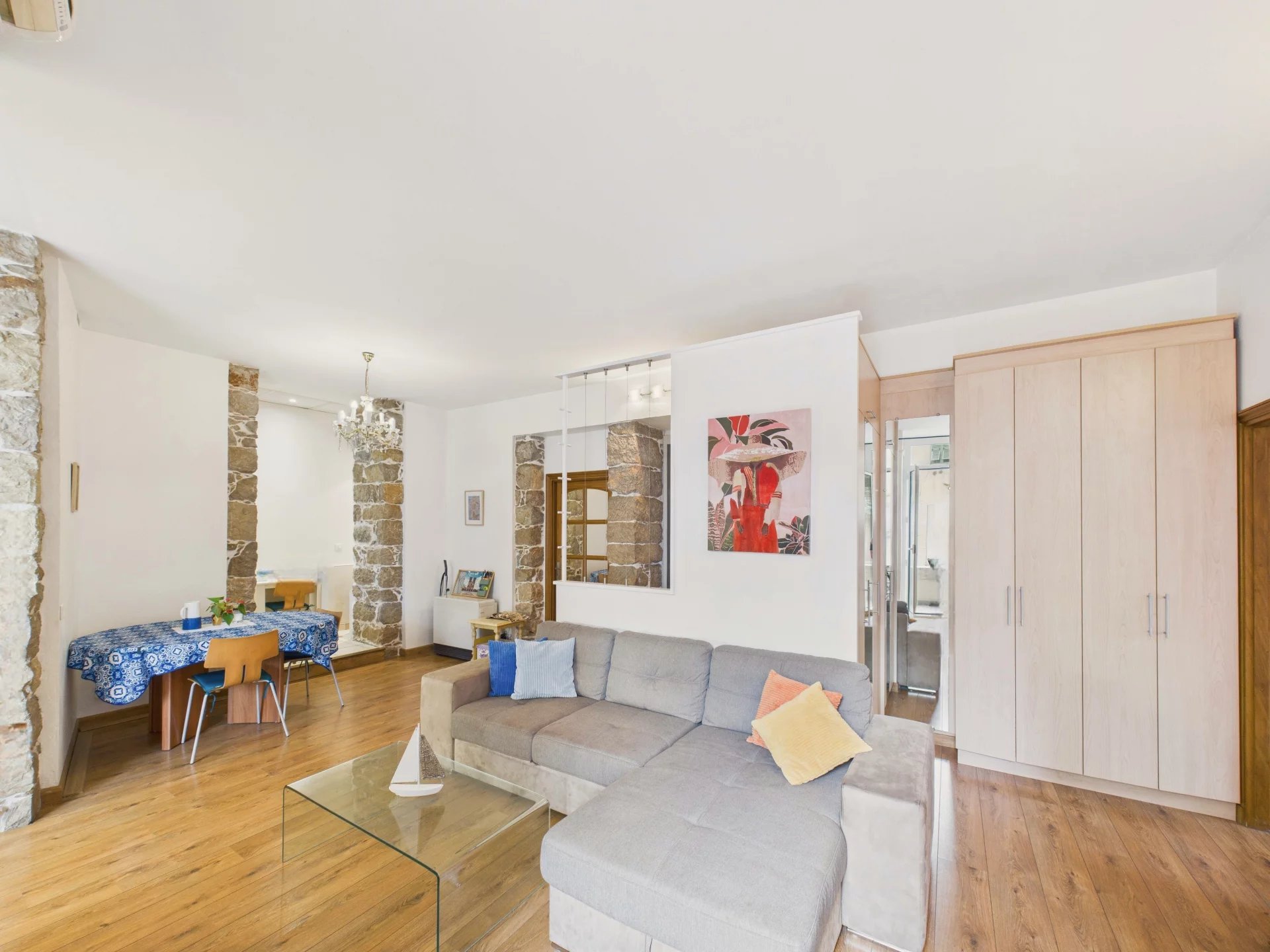 Oriented South/East, this apartment with high ceilings and exposed stones consists of a living room, a separate kitchen and bedroom opening onto a large terrace of 15 sqm facing the sea; then a 2nd bedroom, a bathroom with bathtub and shower, separate toilet. It is also equipped with several custom-made storage space and air conditioning.