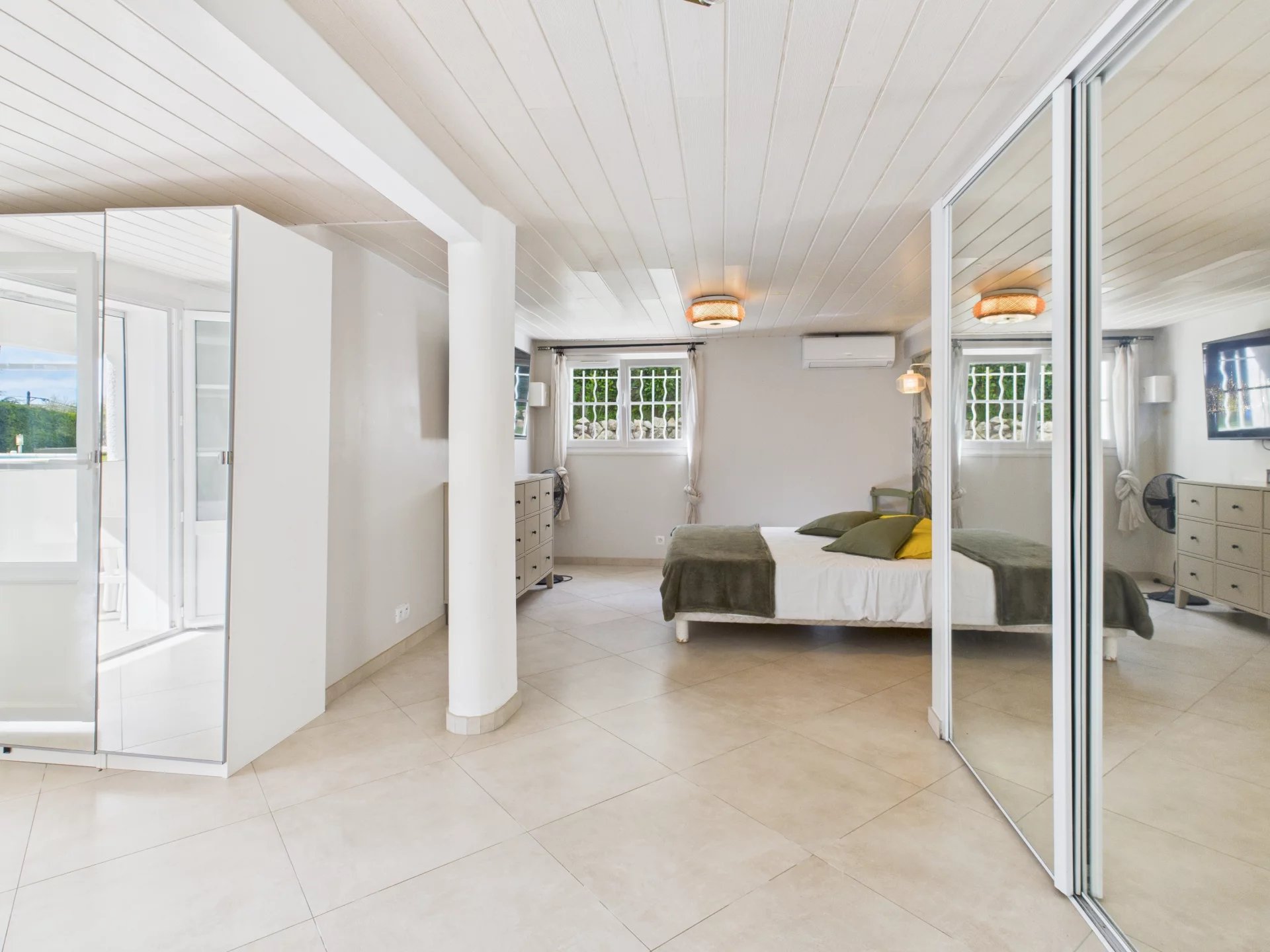 Haveplanet, som også har en separat indgang, tilbyder to ekstra soveværelser, et badeværelse, et toilet, et vaskerum og en anden stue med udgang til terrassen og poolen.