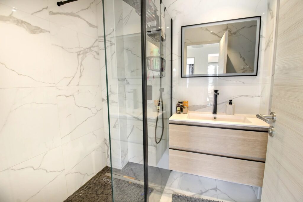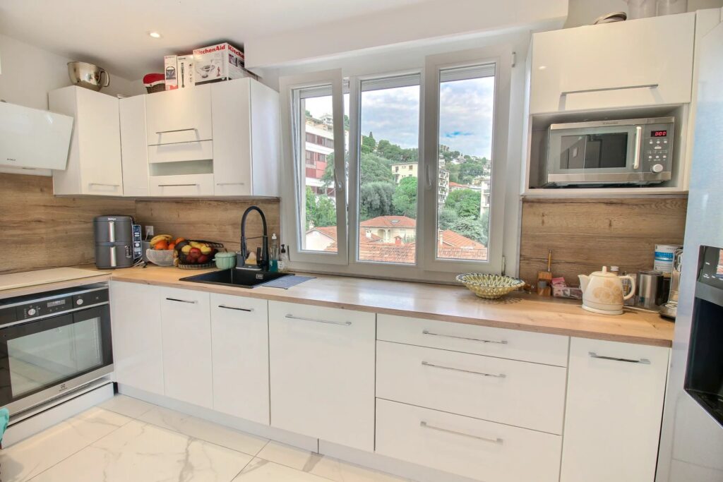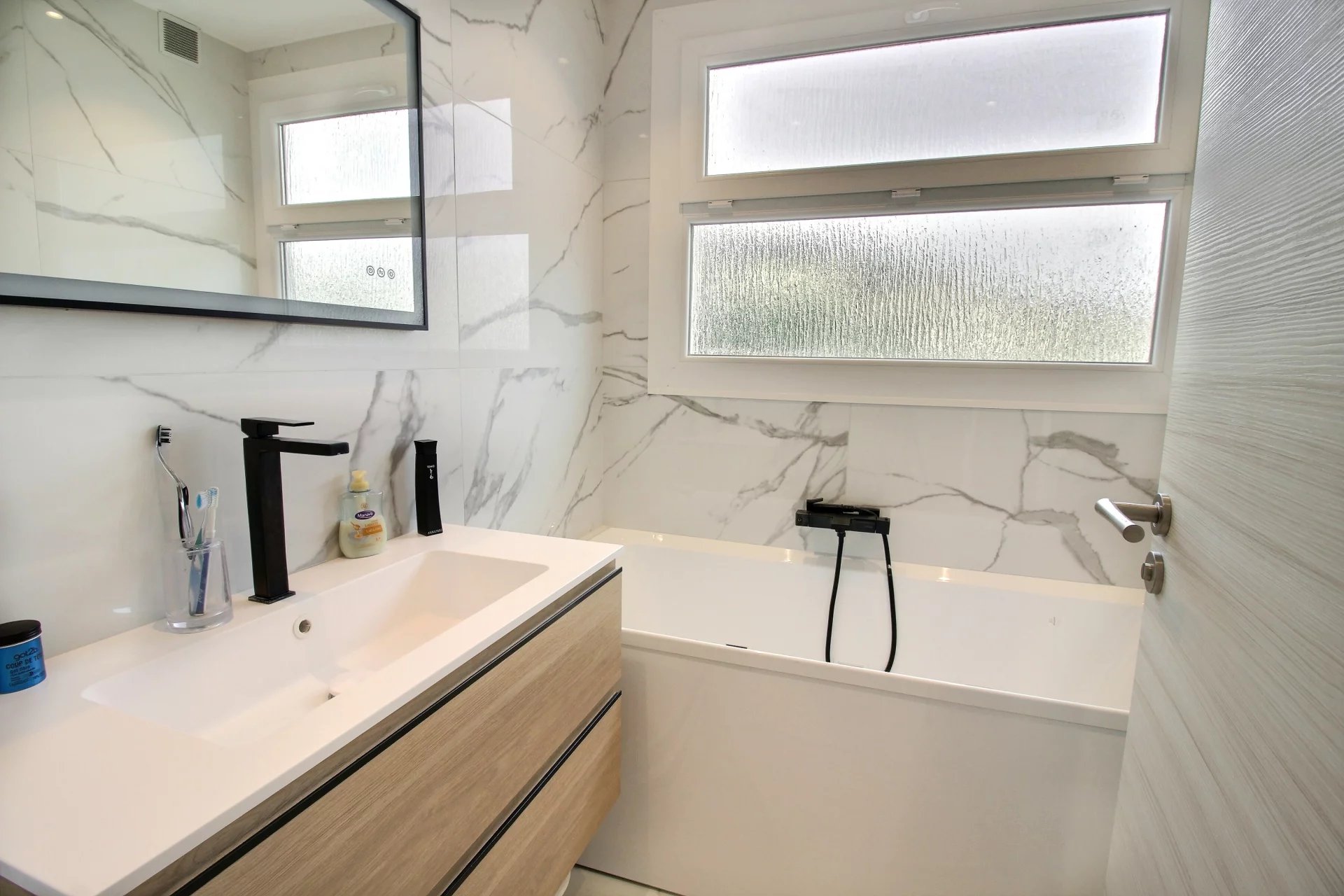 Beliggende i en lille, roligt beliggende ejendom, kun 5 minutters gang fra havet og strandene, kombinerer denne totalrenoverede lejlighed på 119 m² moderne komfort med en varm atmosfære. Du vil blive forført af dens generøse rumfang, exceptionelle lys og praktiske planløsning.