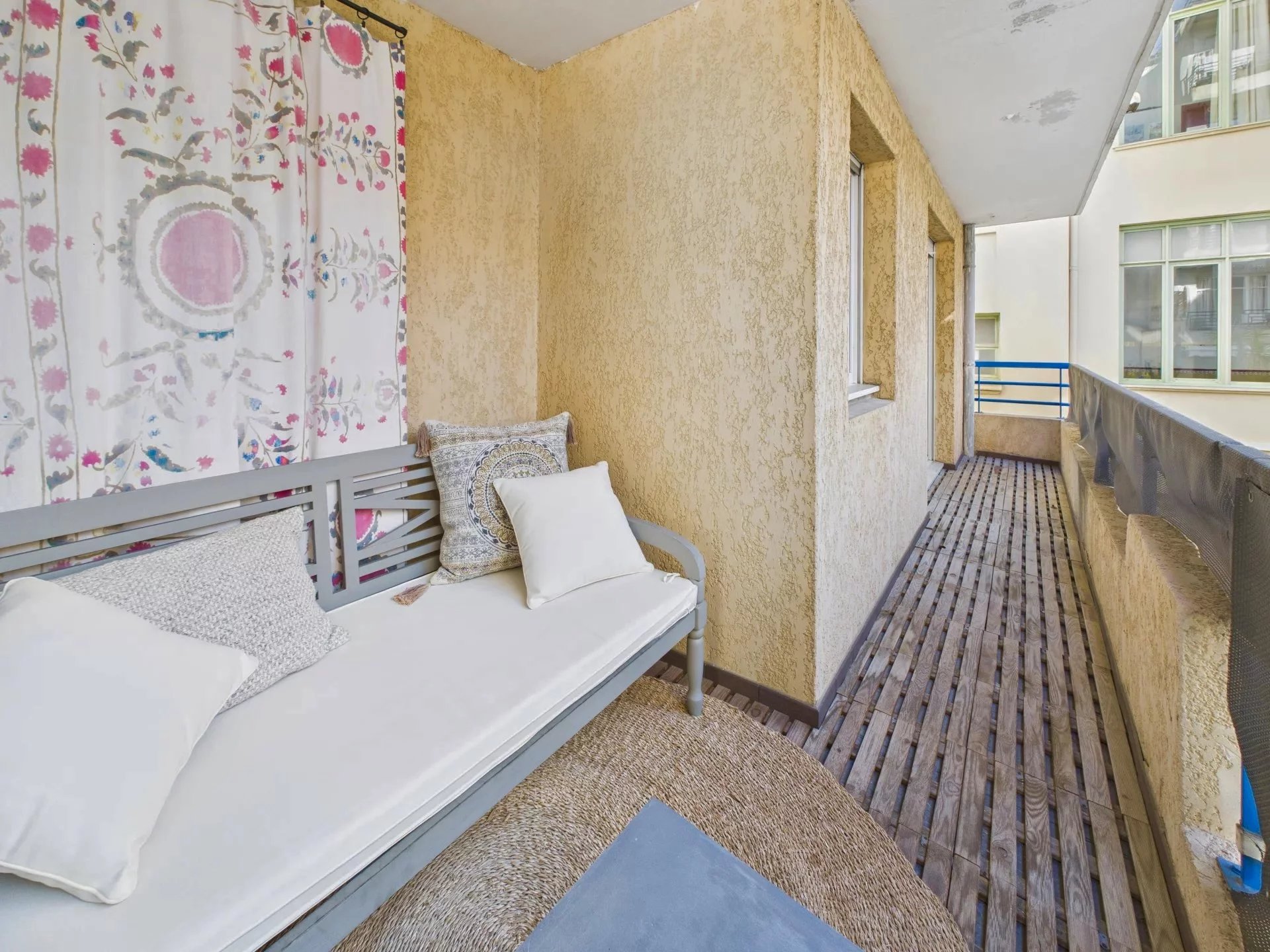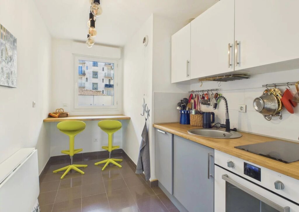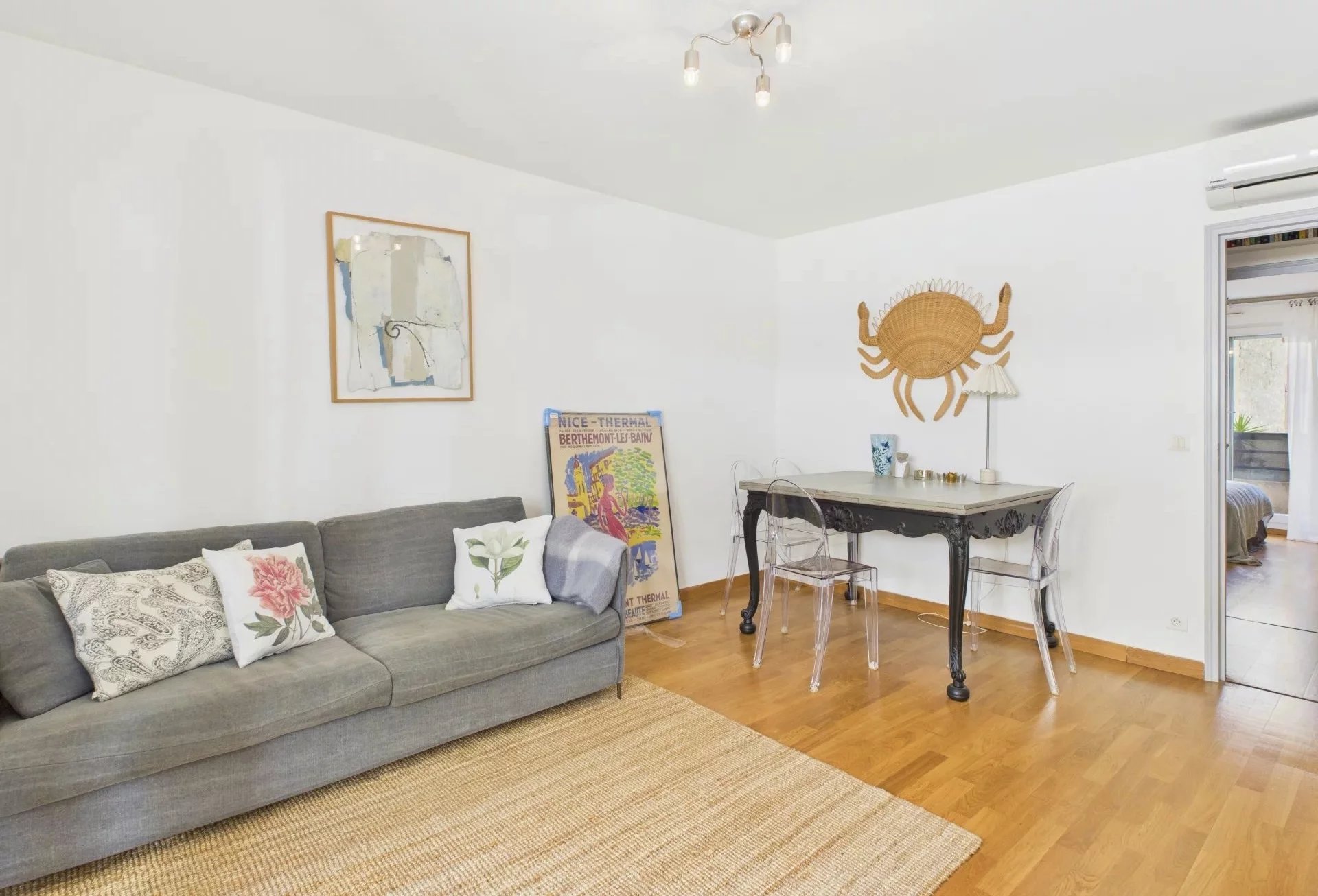 I det charmerende Quartier des Fleurs, kun få skridt fra strandene, butikkerne og offentlig transport, finder du denne dejlige 2-værelses lejlighed på cirka 43 m².