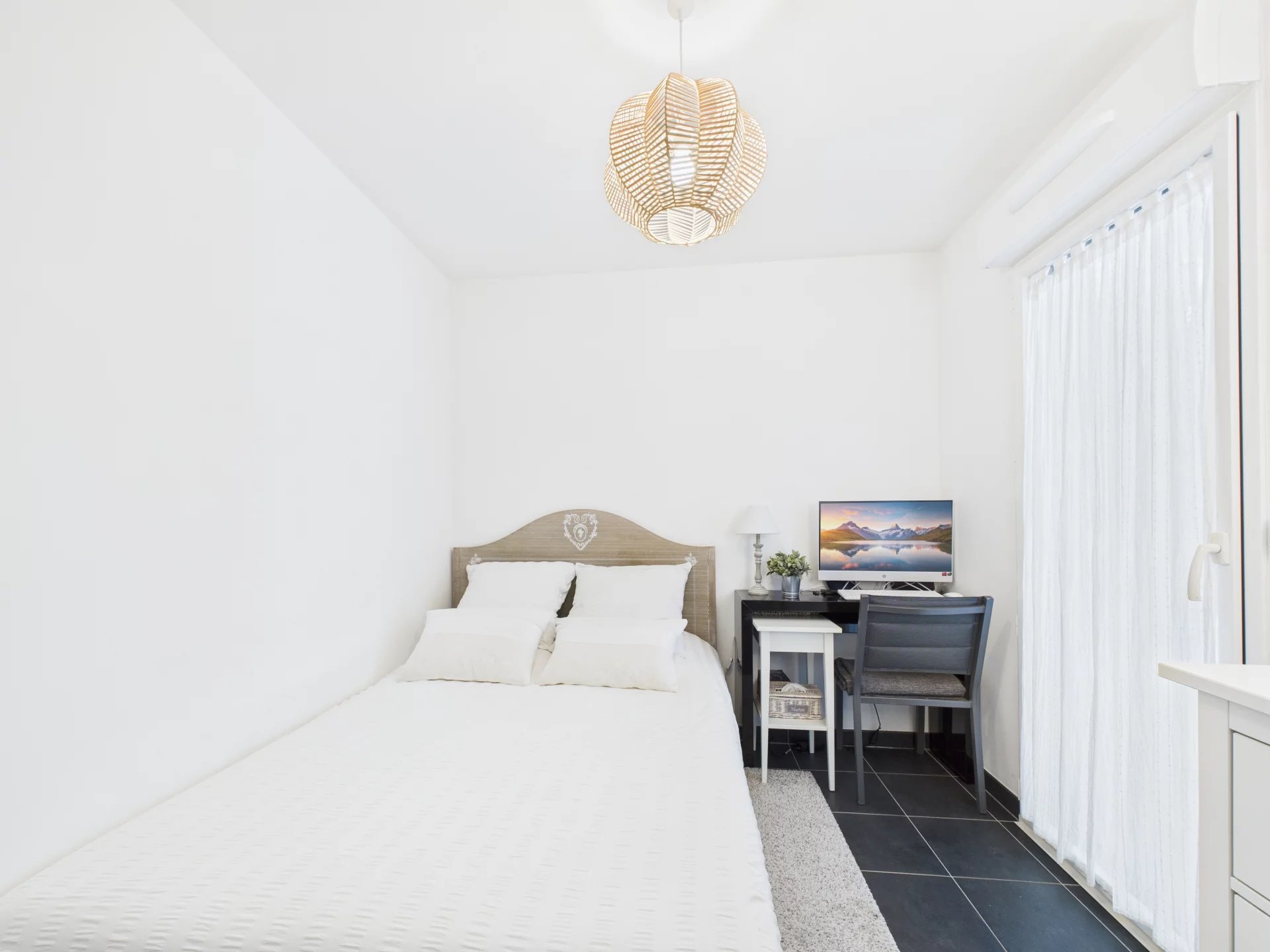 Du vil sætte pris på de moderne bekvemmeligheder i denne lejlighed: reversibel aircondition, elektriske skodder i alle værelser og finish af høj kvalitet. Ejendommen har en swimmingpool med solarium, perfekt til afslapning under Côte d’Azur-solen.