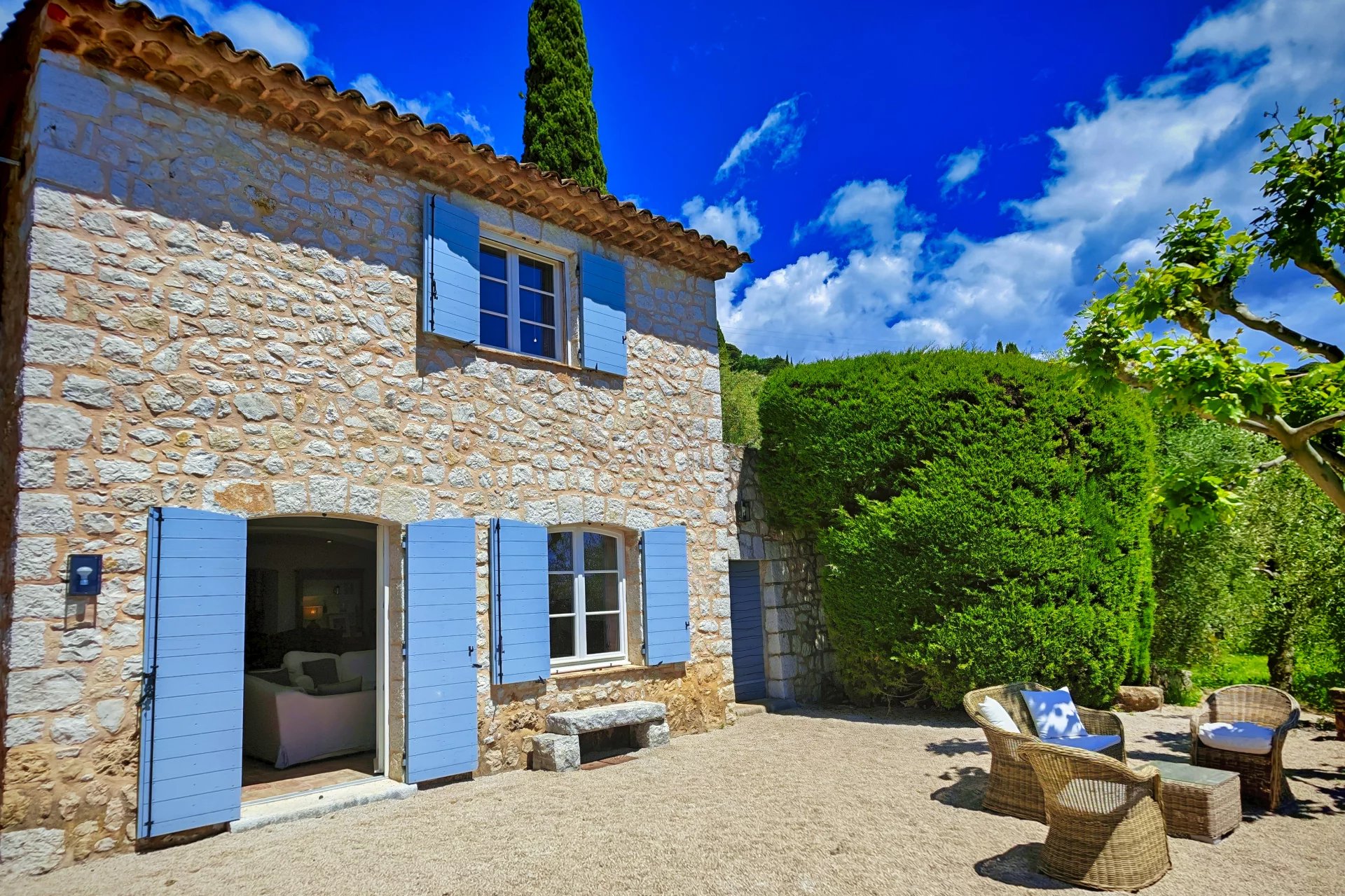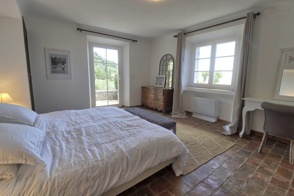 Denne exceptionelle provencalske ejendom tilbyder cirka 375 kvm fuldt renoveret boligareal fordelt på flere bygninger. Beliggende på en stor grund på over 25.000 kvm omfatter ejendommen et hovedhus i sten med fem soveværelser, et gæstehus med fire soveværelser og et ekstra anneks med et stort kontor- og rekreationsområde. Med en privat tennisbane, en 14,5 × 7 m opvarmet swimmingpool og smukt anlagte terrasser beplantet med 450 oliventræer præsenterer ejendommen en imponerende kombination af størrelse, komfort og faciliteter i en idyllisk Côte d’Azur-omgivelse.