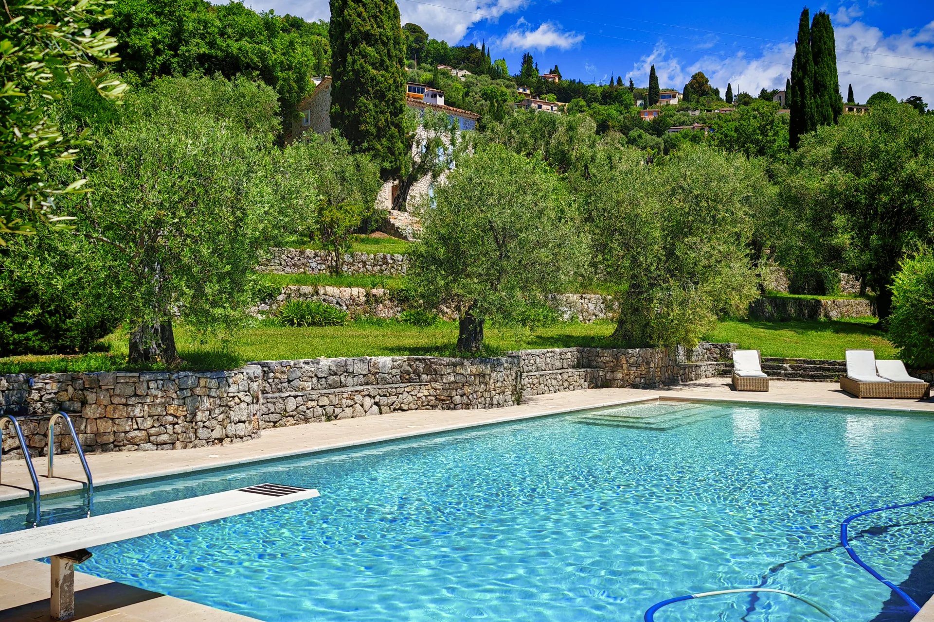 Ejendommen ligger kun en kort gåtur fra den maleriske landsby Cabris på et smukt anlagt område rigt på middelhavsflora. Yderligere faciliteter inkluderer en stor dobbeltgarage, en bygning dedikeret til olivenhøsten, to brønde og flere nyttige udhuse, der tilbyder både bekvemmelighed og potentiale for fremtidig udvikling.