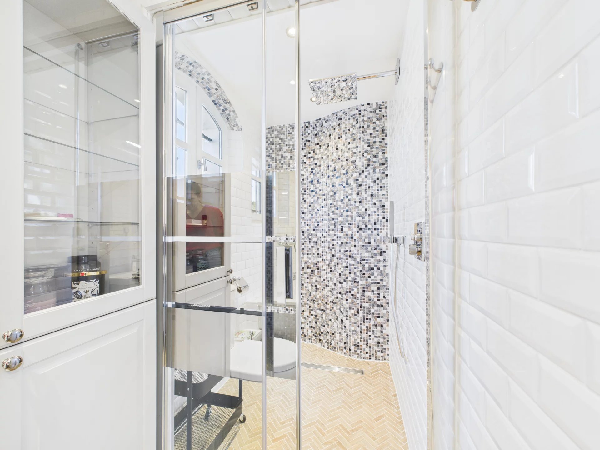 Ovenpå venter der yderligere tre soveværelser, herunder en master suite med privat påklædningsværelse og et elegant badeværelse med bruser, badekar og dobbelt håndvask. De resterende to soveværelser deler et veludstyret badeværelse med både badekar og bruser.