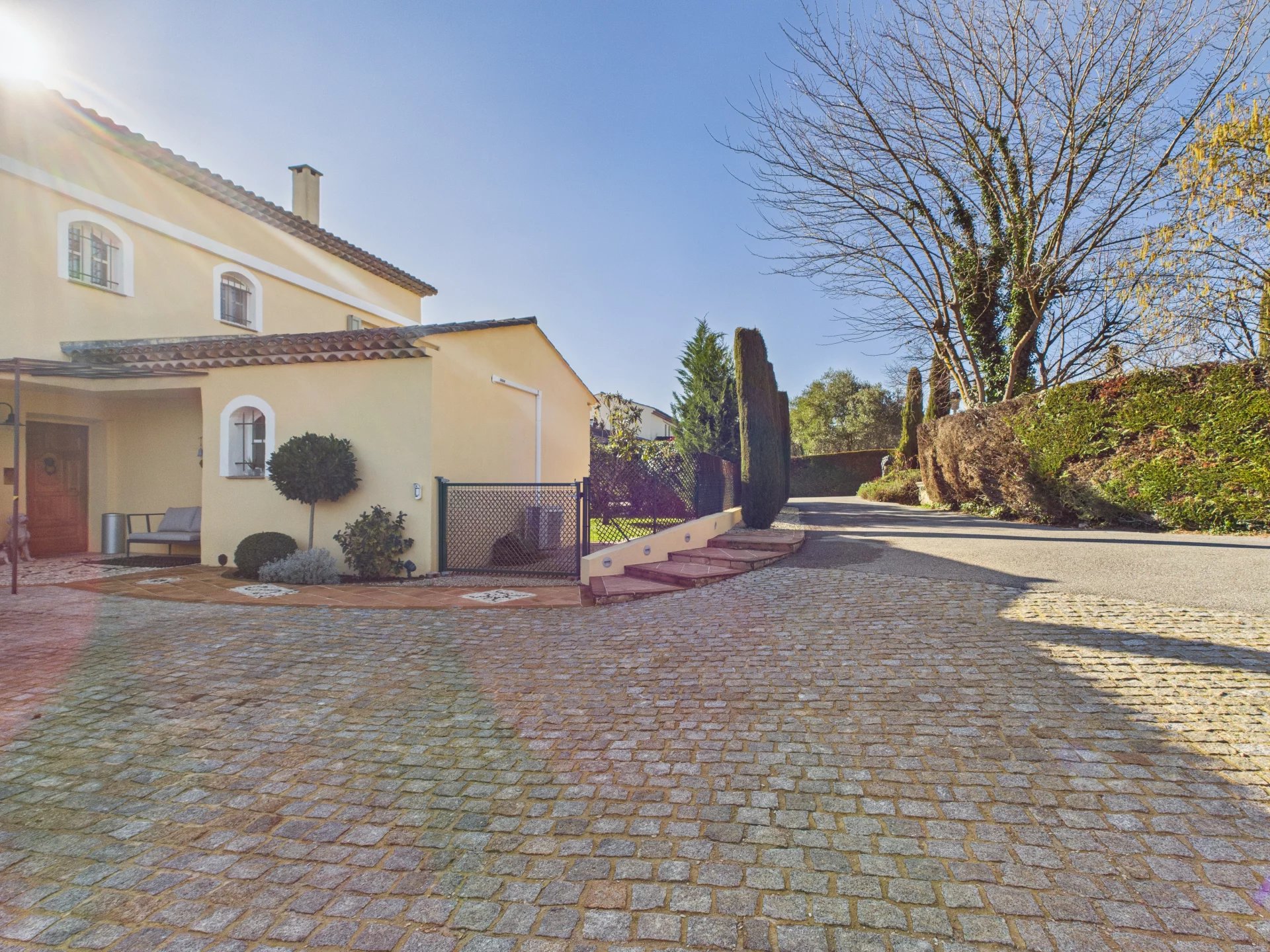 Oplev denne fantastiske villa med swimmingpool, store terrasser og en smukt anlagt have. Beliggende i et privat område med kun tre villaer, og kun fem minutters gang fra den charmerende landsby Valbonne, tilbyder ejendommen en fredelig beliggenhed med nem adgang til butikker og restauranter.