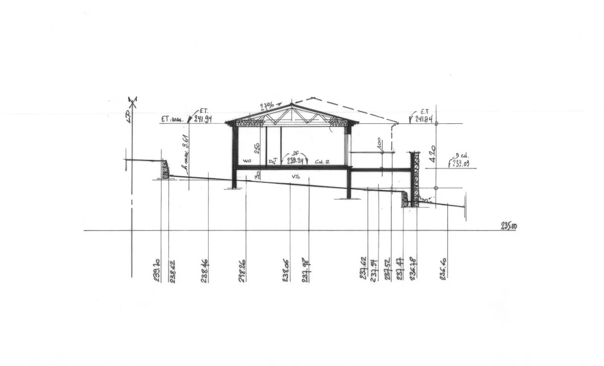 Den eksisterende ejendom består i øjeblikket af en stue, et køkken, et badeværelse, to soveværelser og et vaskerum og er klar til at blive genopbygget i henhold til den godkendte byggetilladelse.