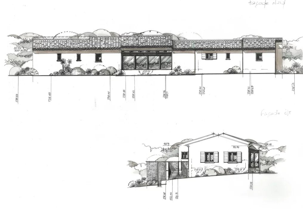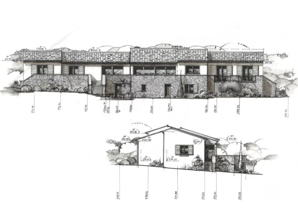 En fantastisk mulighed for at bygge din egen smukke villa i ét plan med 5 soveværelser på 300 m², beliggende på en stor, flad grund på 2.700 m² med pool og parkering. Ejendommen ligger i en privat og rolig gade i Saint-Paul-de-Vences og tilbyder en fantastisk udsigt.