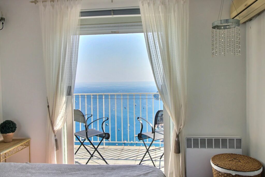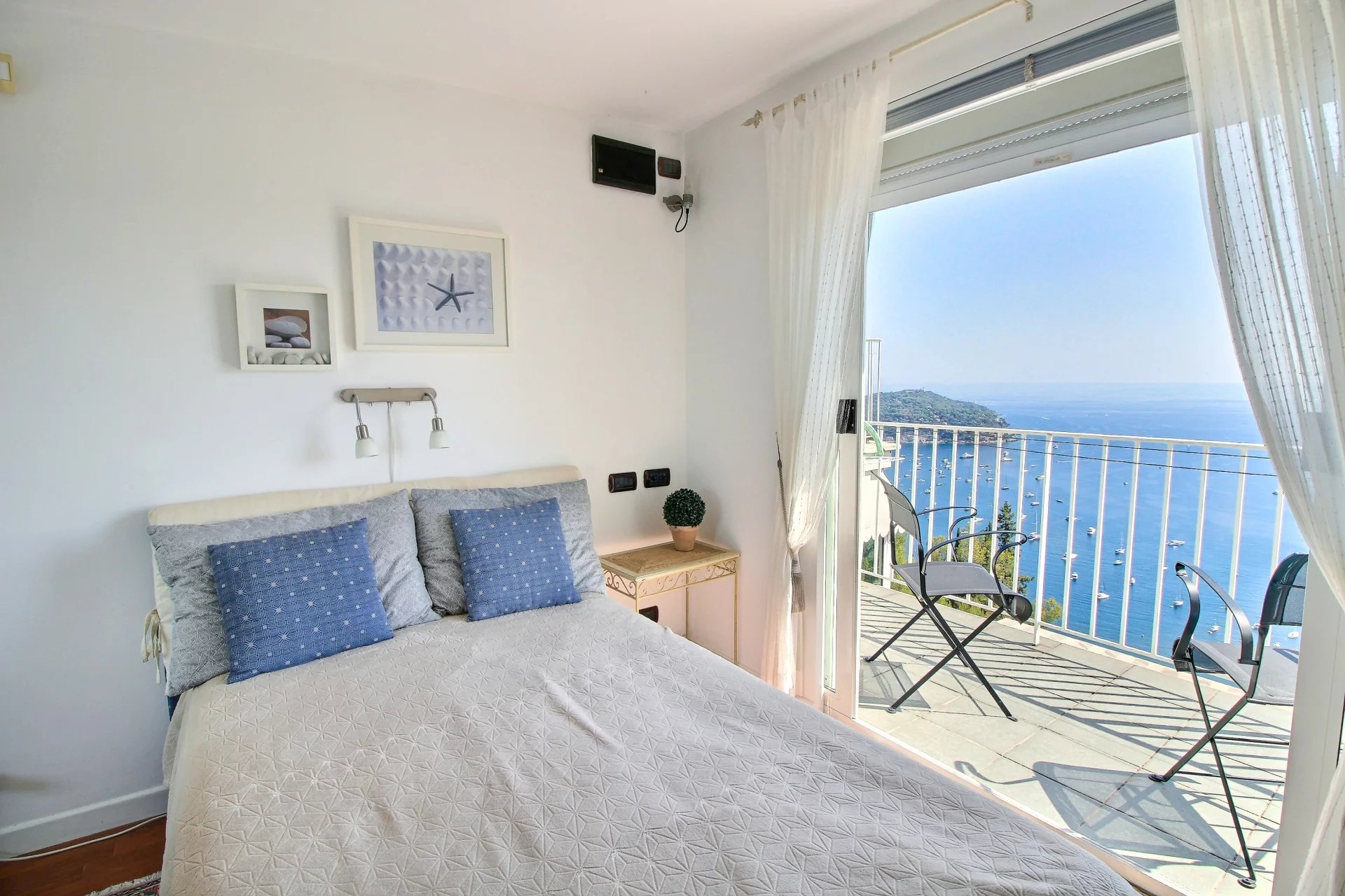 Denne duplexlejlighed ligger ovenover byen i Villefranche-sur-Mer og har en fantastisk panoramaudsigt over havet.