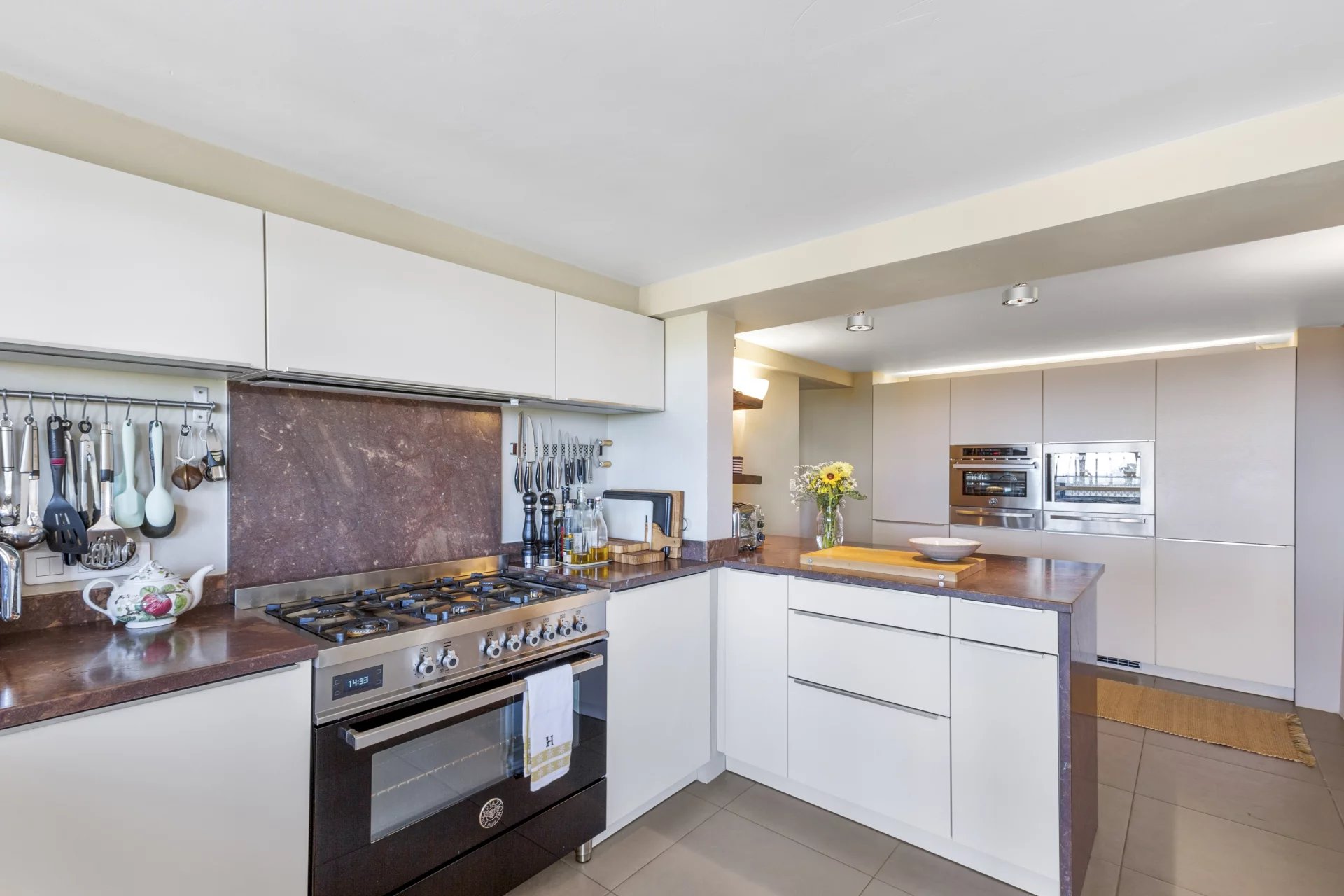 Flere terrasser, både solrige og skyggefulde. En arkitekt designet spektakulær “infinity-pool” fuldender disse unikke omgivelser.