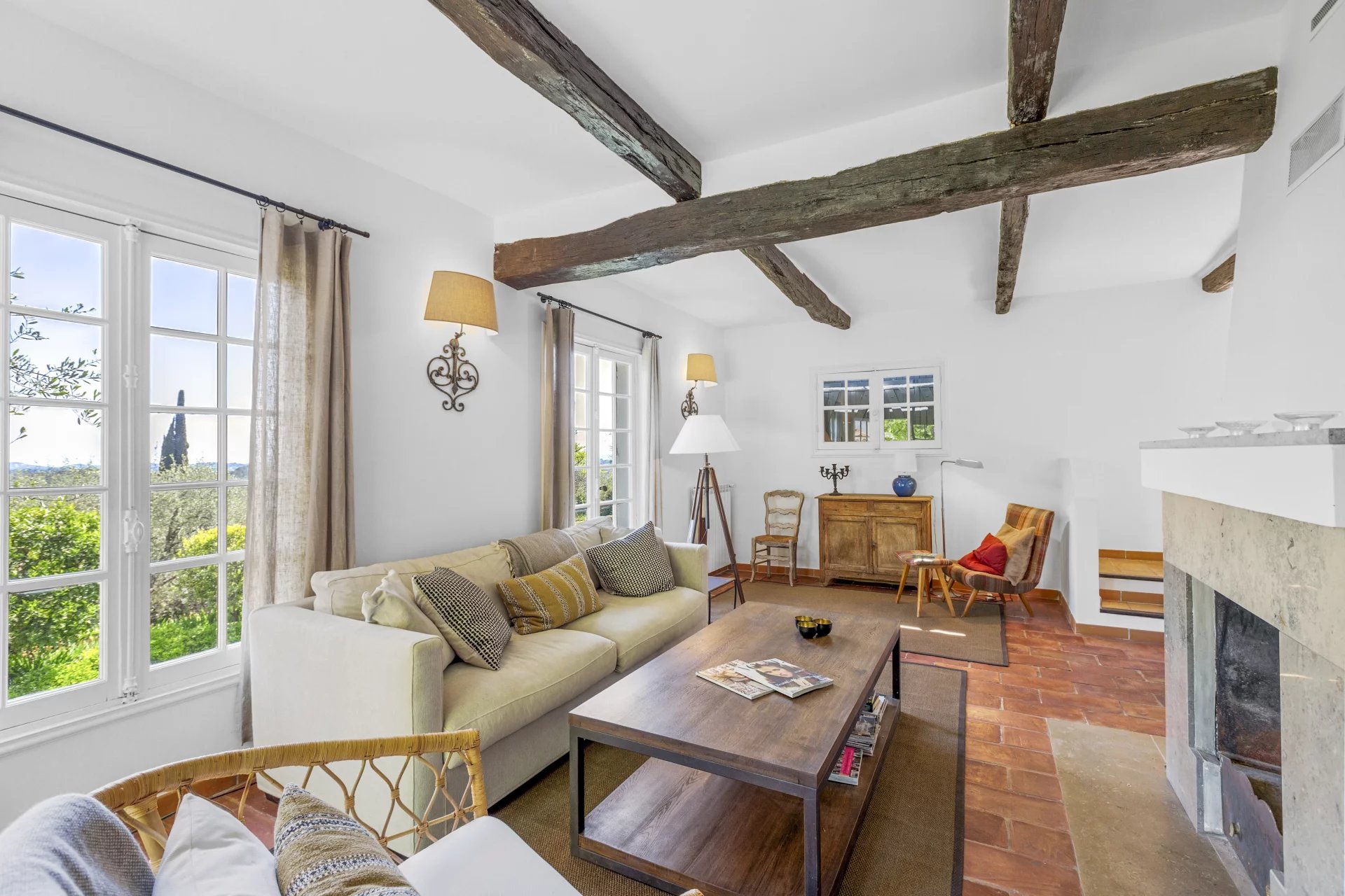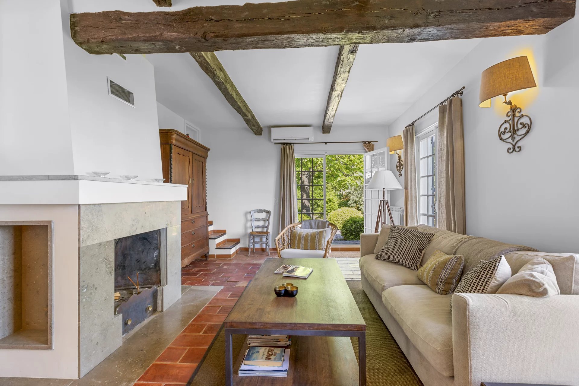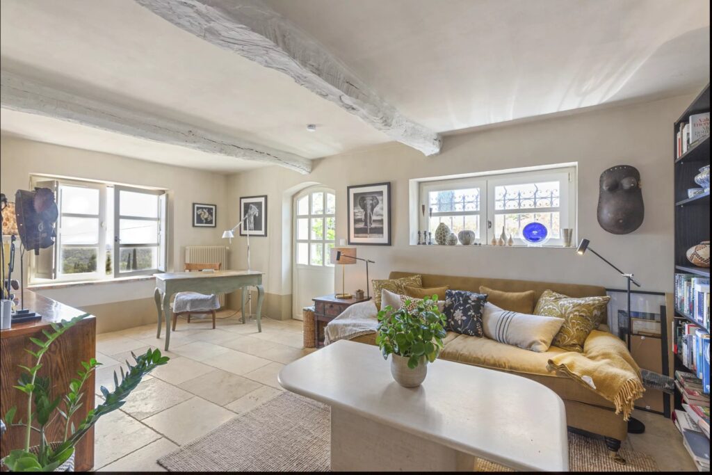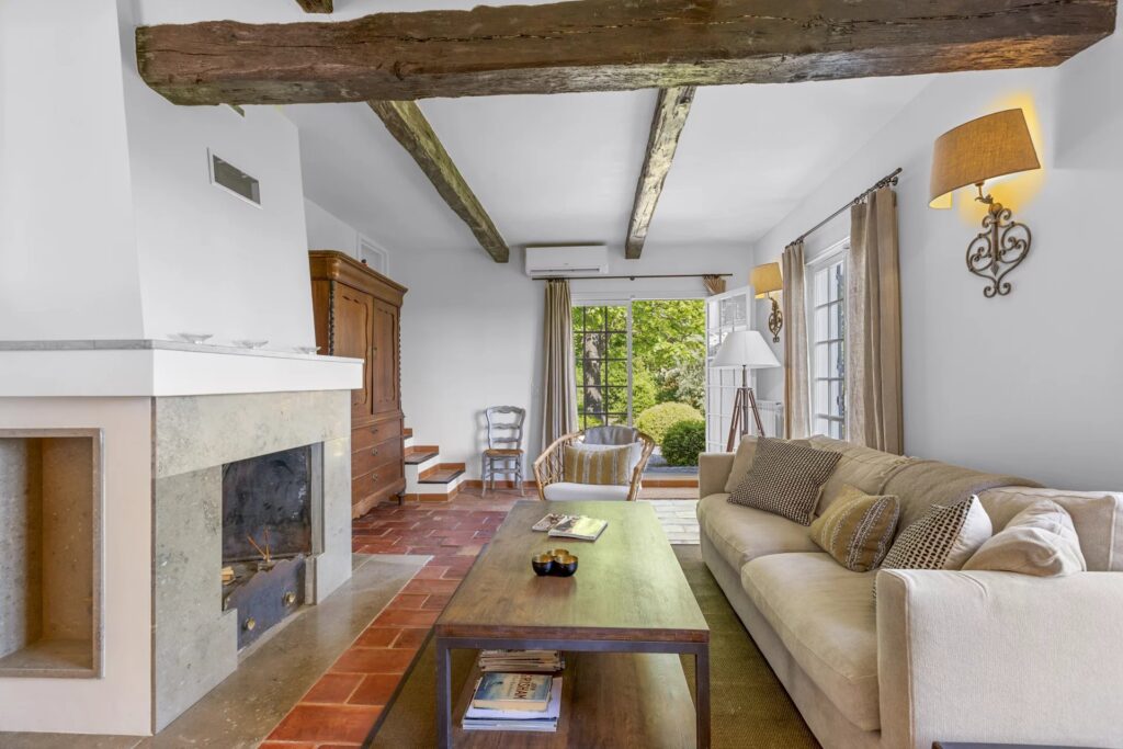 Hovedhuset, der er fordelt på tre etager, blander historisk charme med moderne komfort: elegante stuer med pejs, et bibliotek, et moderne køkken, sauna og tre soveværelser med eget badeværelse, inklusive et fremragende master suite med to “walk-in closets”.