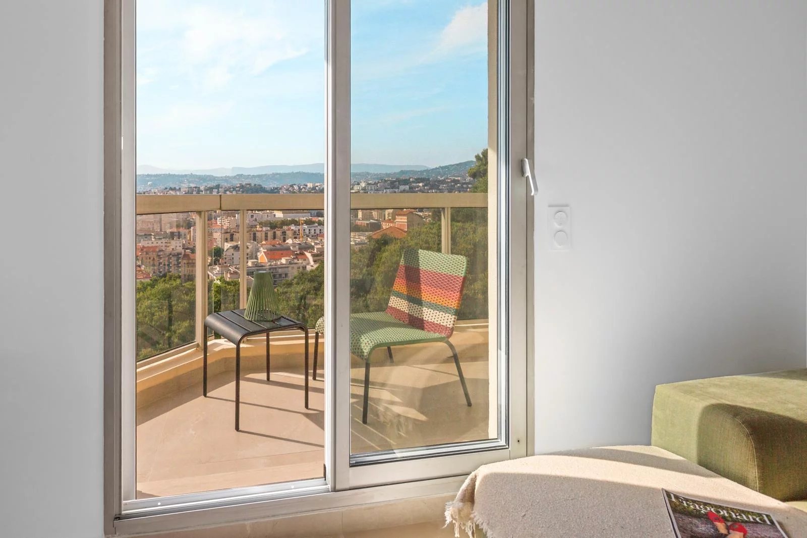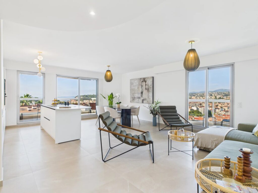 Denne exceptionelle ejendom er fuldstændig renoveret med smag og materialer af høj kvalitet og tilbyder en spektakulær udsigt over Middelhavet, Nice Slot og hele byen.