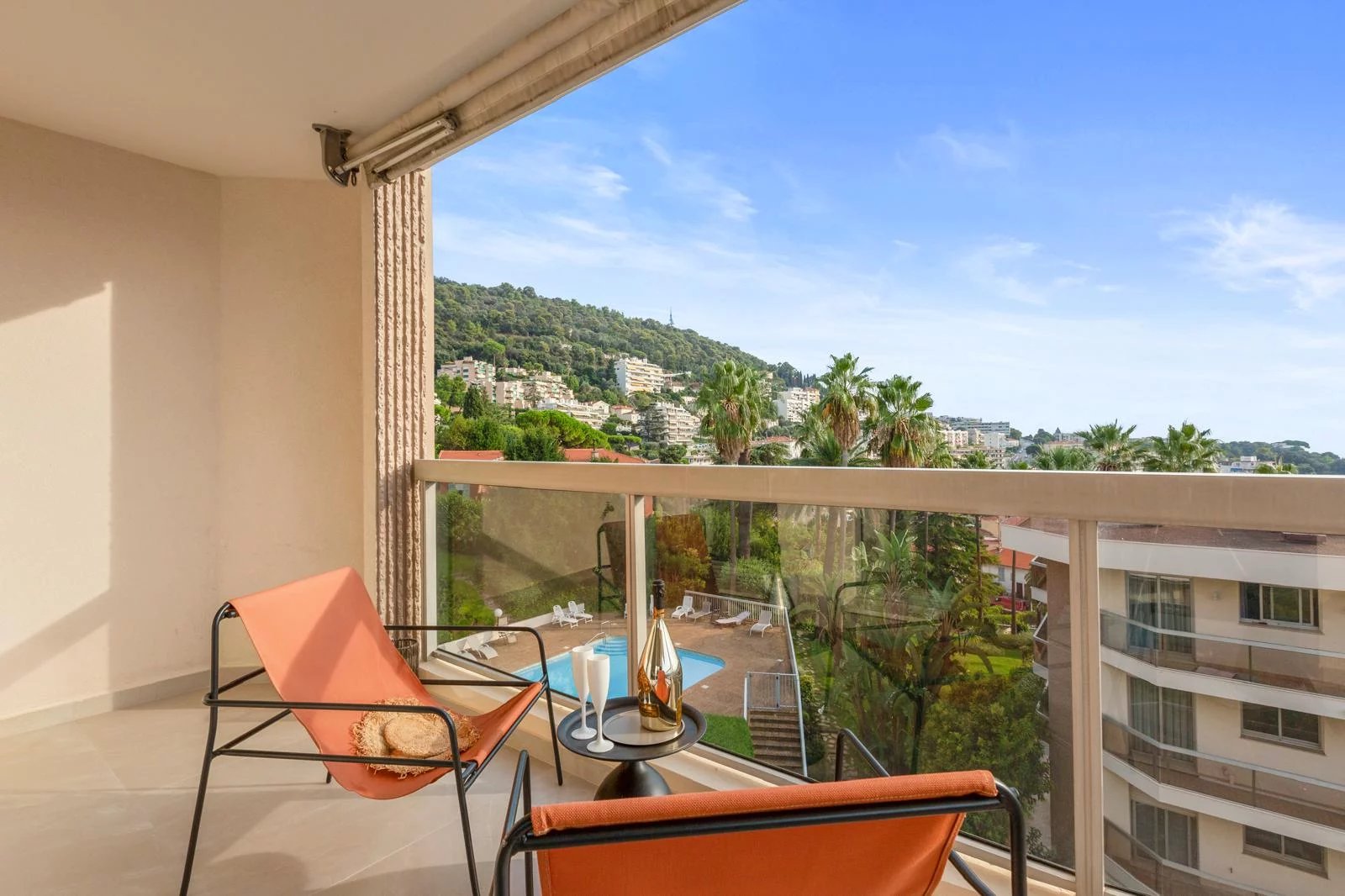 Beliggende på toppen af det eftertragtede Mont Boron, i en prestigefyldt ejendom med swimmingpool og vicevært, er denne lejlighed med moderne linjer den perfekte blanding af raffinement og middelhavslivsstil.