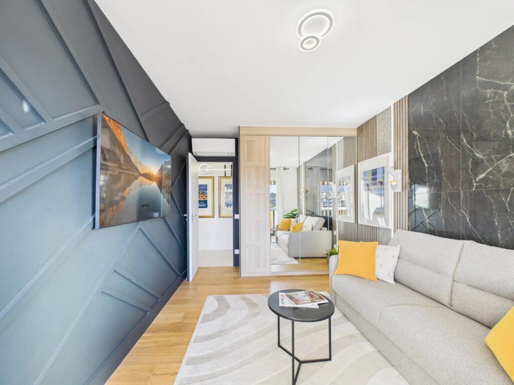 Pragtfuld lejlighed beliggende på ottende og næstsidste etage i en eksklusiv ejendom med en vicevært. Den er fuldstændig renoveret med kvalitetsmaterialer og sælges fuldt møbleret. Den tilbyder et moderne og komfortabelt boligmiljø, kun få skridt fra alle faciliteter og Cannes centrum.