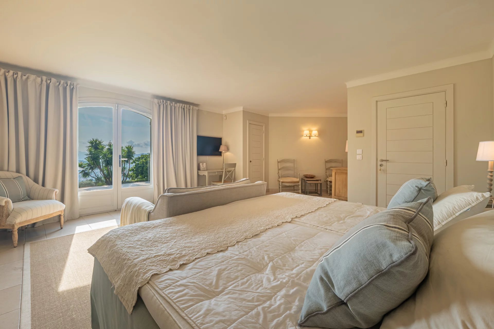I stueetagen er der fire pragtfuldt udstyrede soveværelser, der hver har deres eget badeværelse, hvilket sikrer absolut komfort og privatliv. Badet i naturligt lys åbner de ud mod et beroligende landskab, hvor interiør og eksteriør smelter harmonisk sammen.