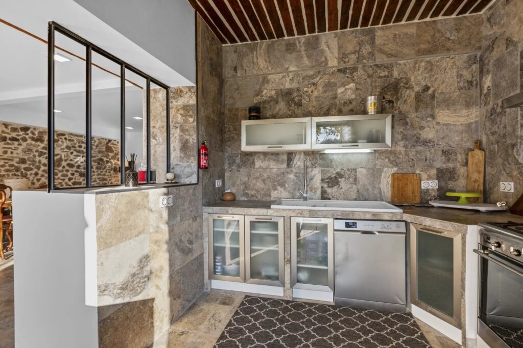Charmen fra det gamle er bevaret, samtidig med at moderne komfort er integreret: synlige bjælker, originale stenvægge, antikke klosterdøre, aluminiumsindlæg, centralvarme og fuldstændig fornyet isolering.