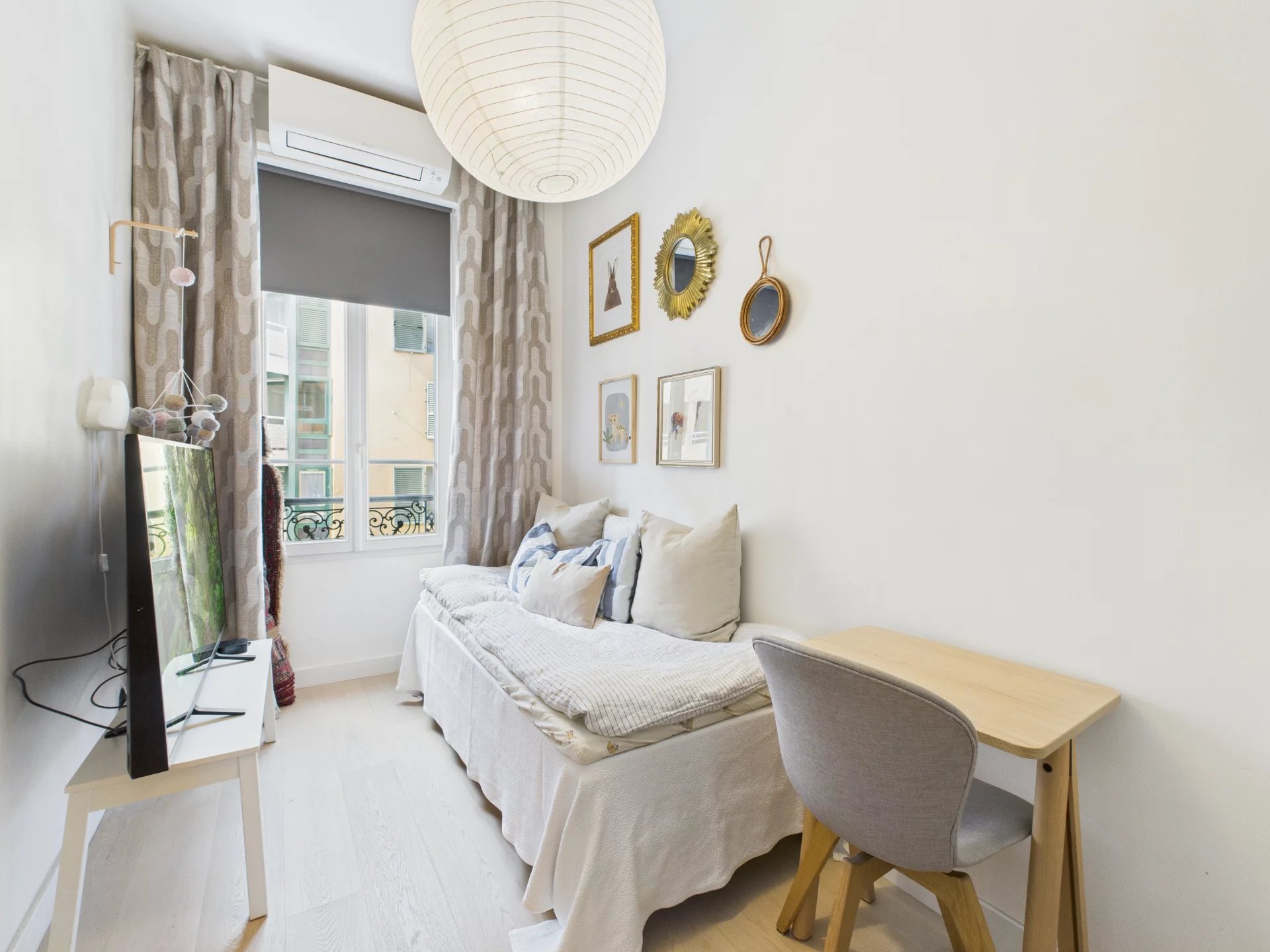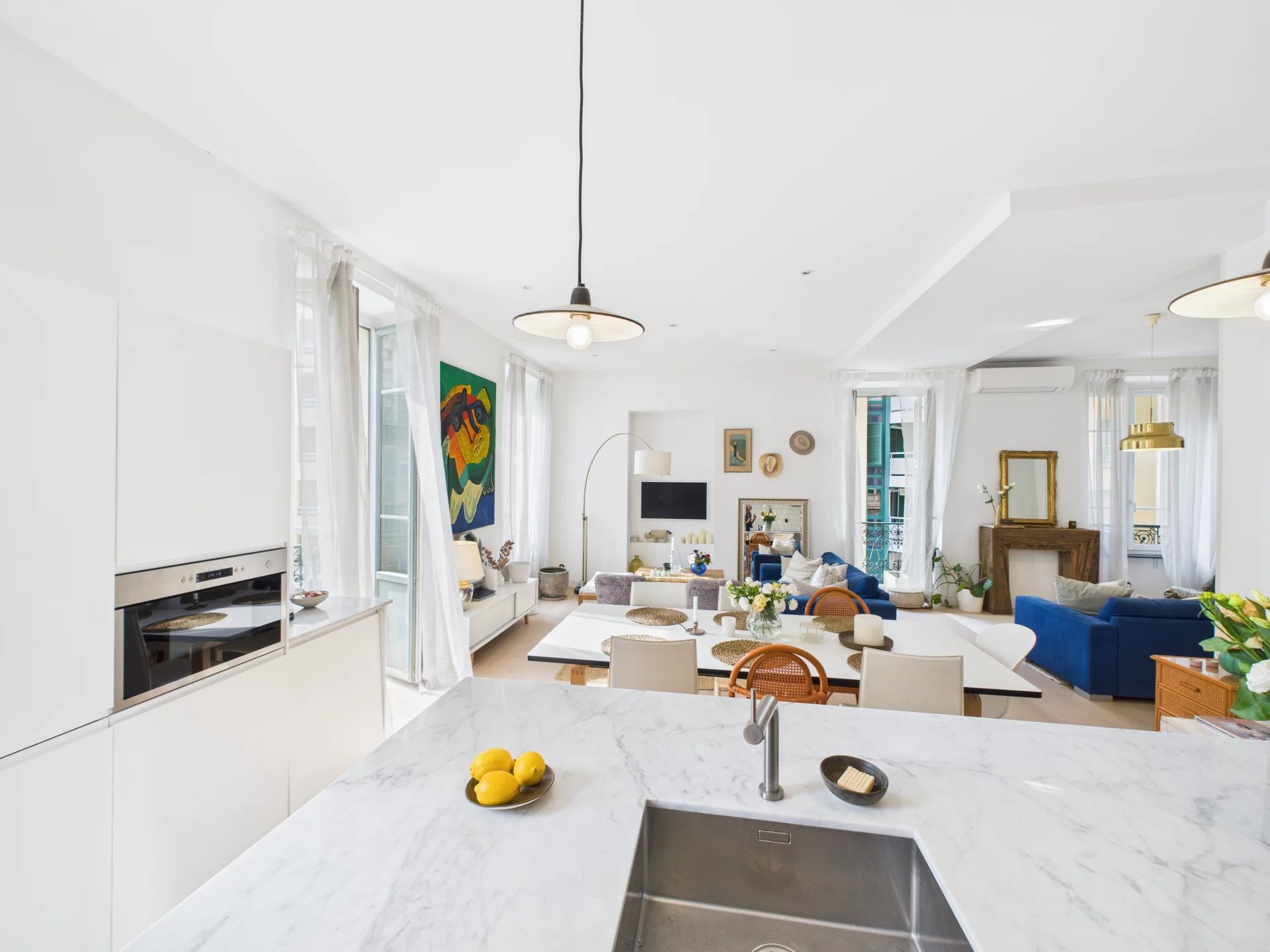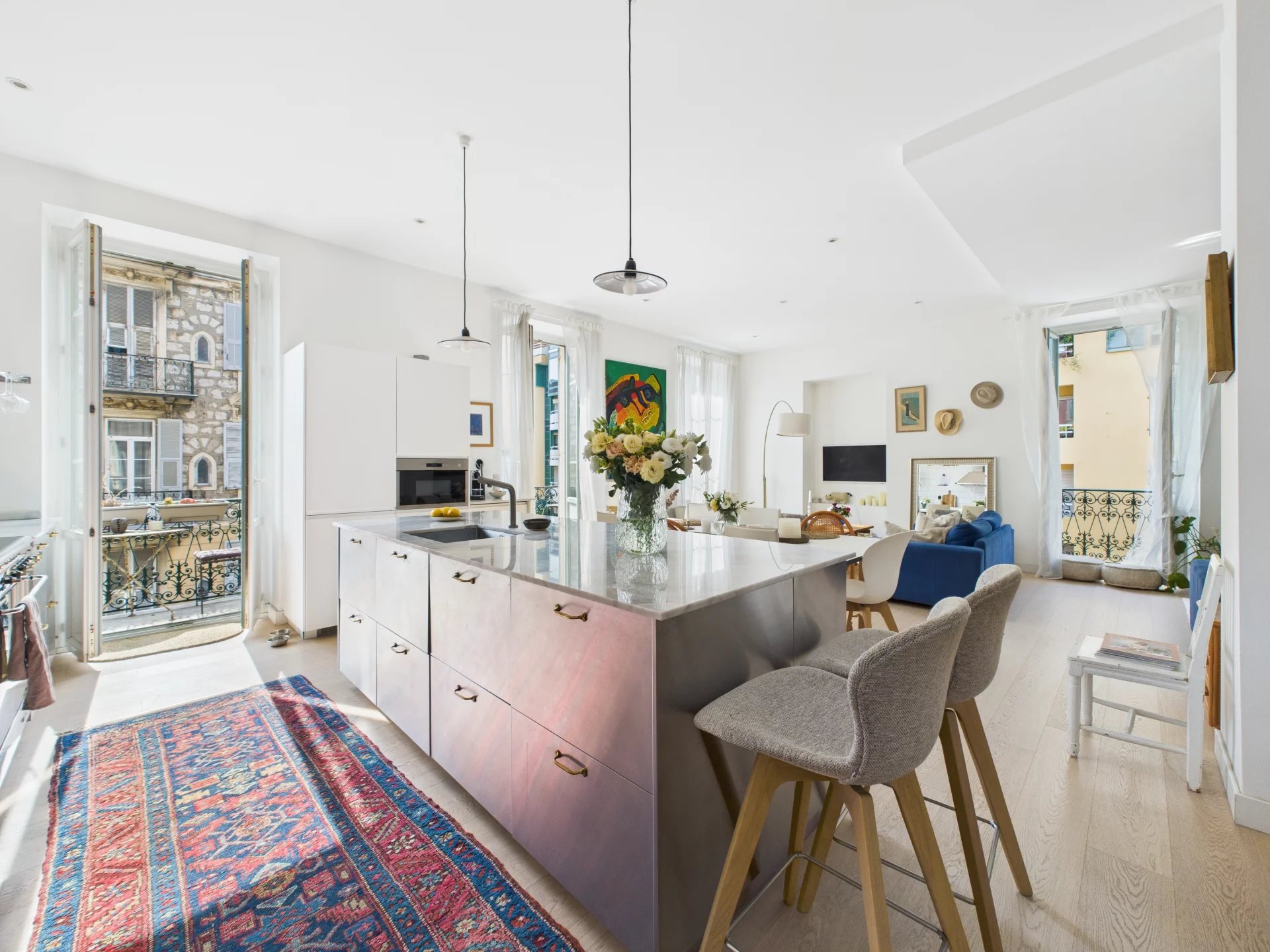 Lejligheden ligger i hjertet af den maleriske havn i Nice og er omgivet af farverige facader, livlige caféer og fremragende restauranter. Sporvogns- og busstoppesteder ligger kun fem minutters gang væk, mens Nice Côte d’Azur Lufthavn ligger bekvemt kun 25 minutters kørsel derfra.