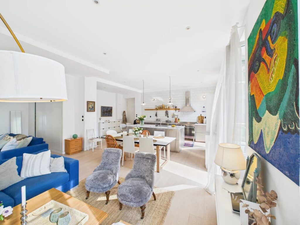 Denne lyse og indbydende 4-værelses lejlighed på cirka 114 m² vil charmere dig med sit lyse interiør, centrale beliggenhed og fire altaner – hvoraf den ene har delvis havudsigt.