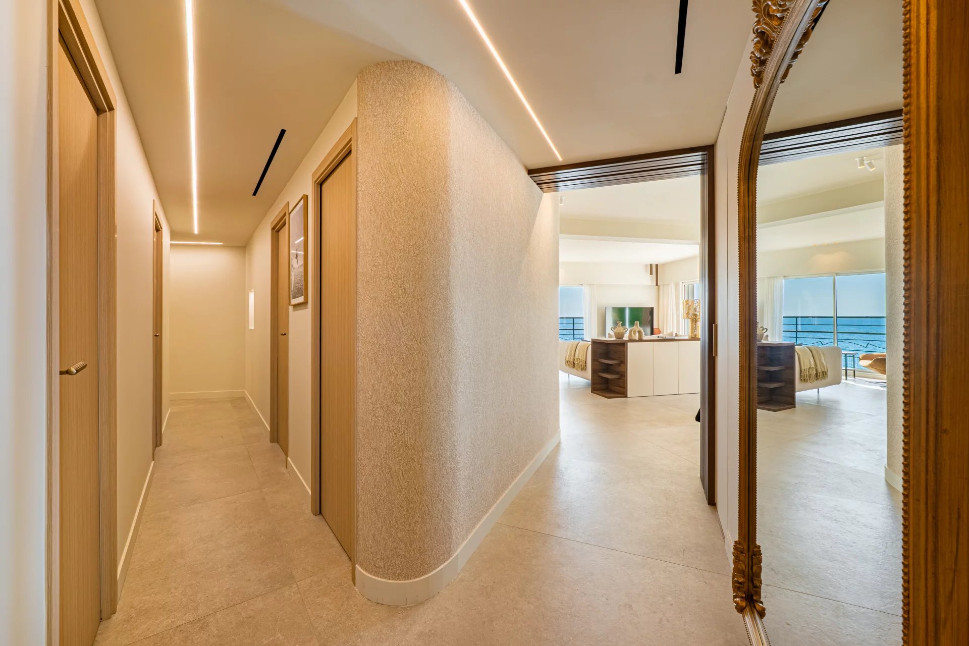 Lejligheden er fuldstændig redesignet med omhyggeligt udvalgte materialer og eksklusive finish og tilbyder raffinerede faciliteter i et privilegeret boligmiljø.