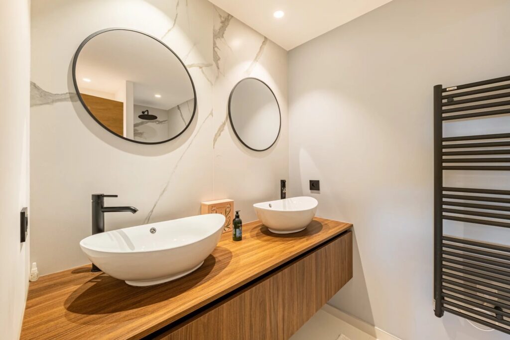Soveområdet, der ligger bagest i lejligheden, består af to soveværelser: en master suite med påklædningsværelse og brusebadeværelse med toilet, og et andet soveværelse med eget brusebadeværelse. Gæstetoilet.