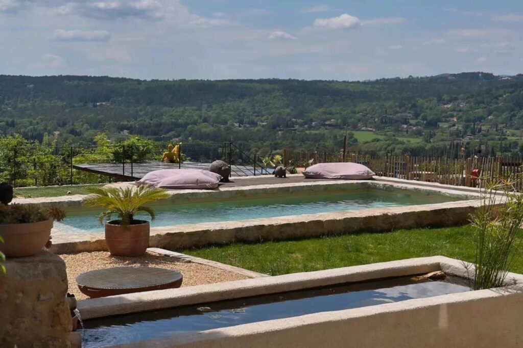 Mindre end fem minutters gang fra landsbyen Fayence kombinerer denne fuldstændig renoverede tidligere silkefabrik autentisk charme med moderne komfort i fredelige omgivelser med betagende panoramaudsigt.