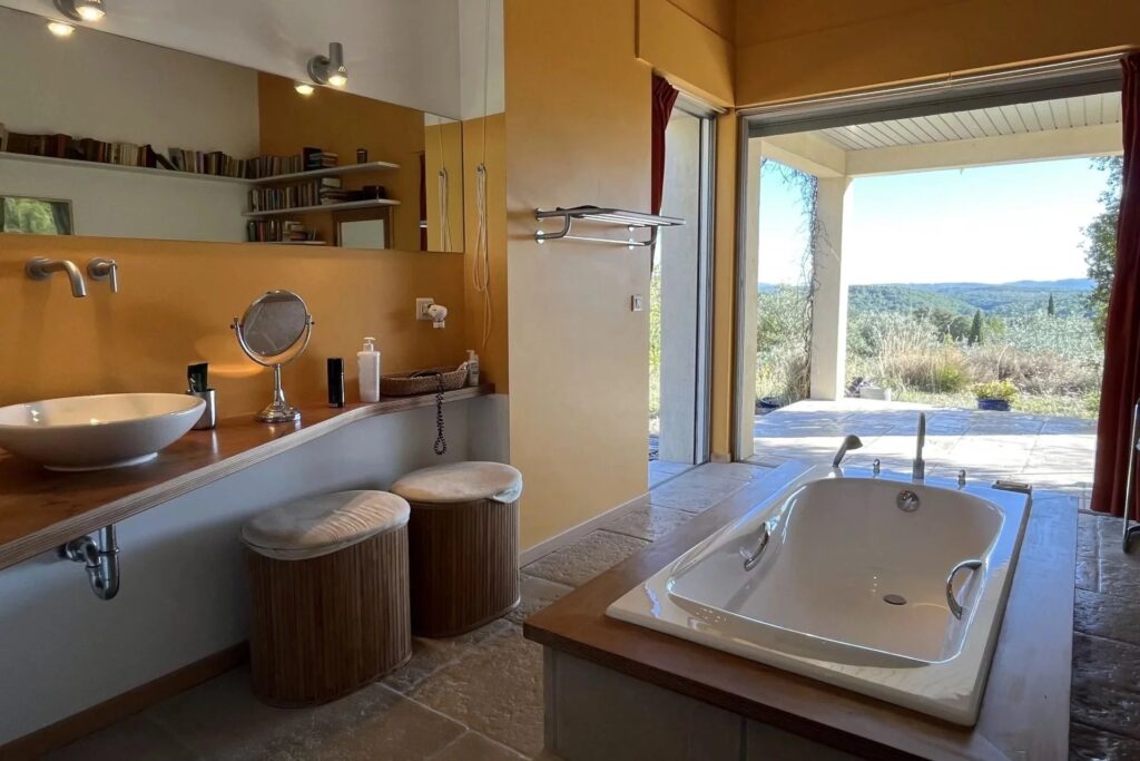 Kun 5 minutters gang fra den fantastiske gamle landsby Seillans, ligger denne smukke, moderne villa i ét plan på 150 m² med en 6.400 m² provencalsk have med adskillige oliventræer. Den nyder absolut fred og ro og kan prale af en storslået udsigt.