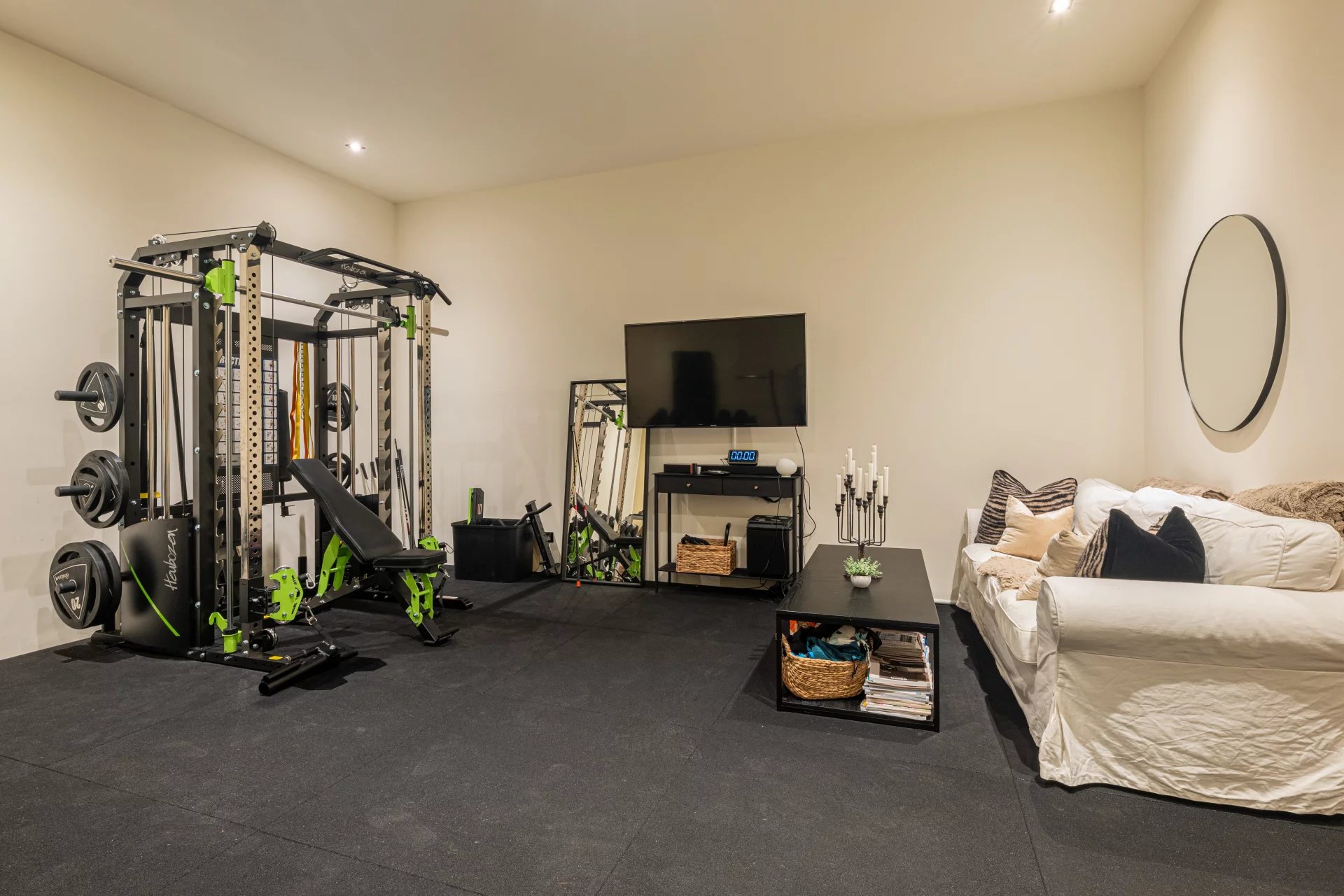 Haveplanen har tre soveværelser med eget badeværelse, hvert med eget badeværelse, et vaskerum, et stort fitnesscenter og et multifunktionelt rum med højt til loftet, der kan bruges som hjemmebiograf, vinkælder eller opbevaringsplads.