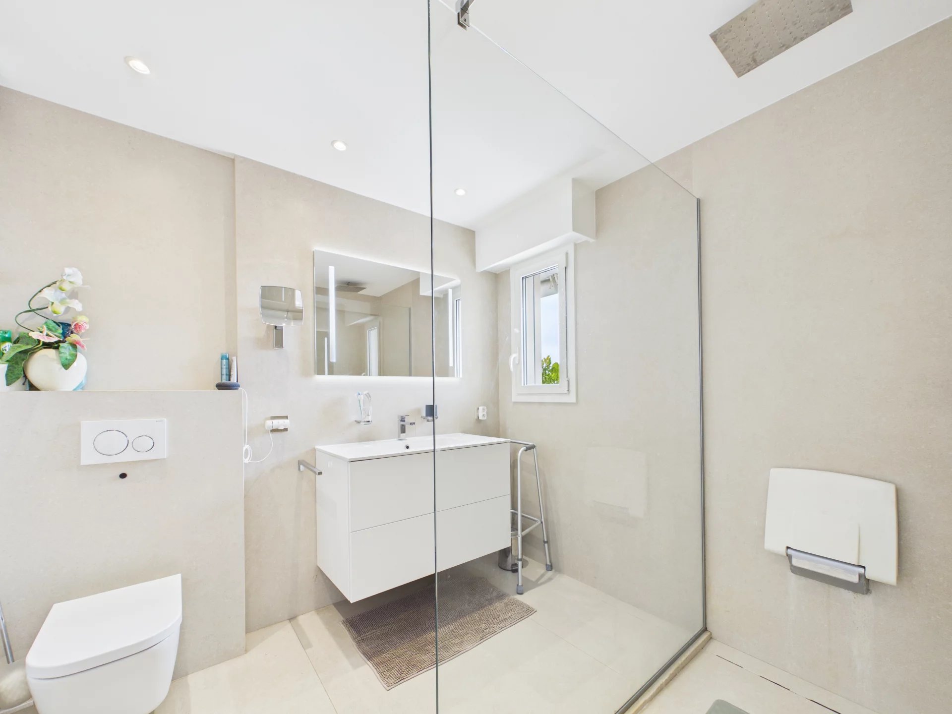 Lejligheden har eksklusive finish, reversibel aircondition, varmepumpeopvarmning, en garage med elbilopladning og en privat kælder.