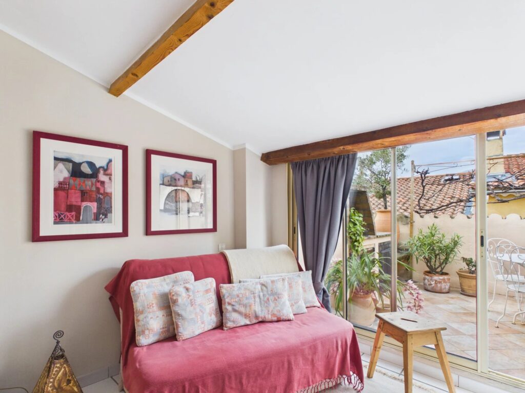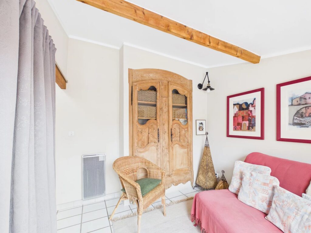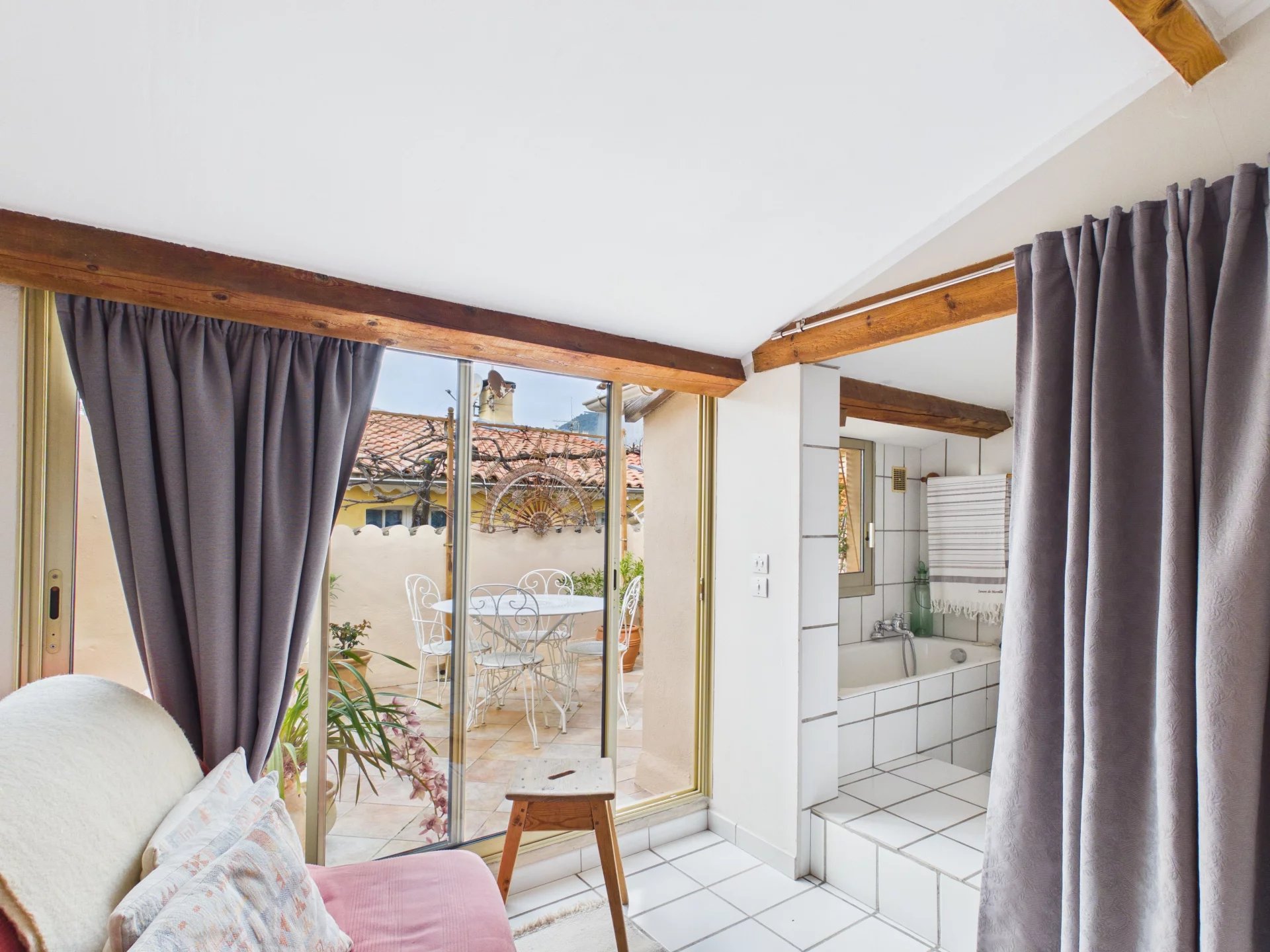 Tredje sal: Et lille værelse med badeværelse og toilet, der fører ud til en terrasse på 12 kvadratmeter med grillplads.